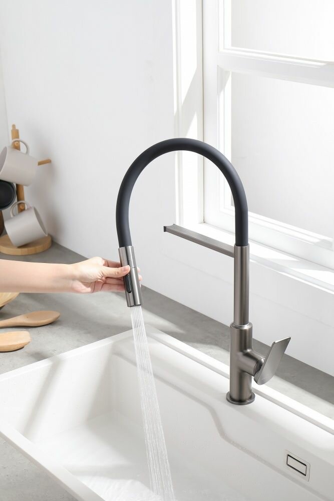 Смеситель для кухни GANZER с гибким магнитным изливом/Графит+черный (GZ07126-Q): сравнение цен, характеристики, фото, актуальное наличие и цены.
