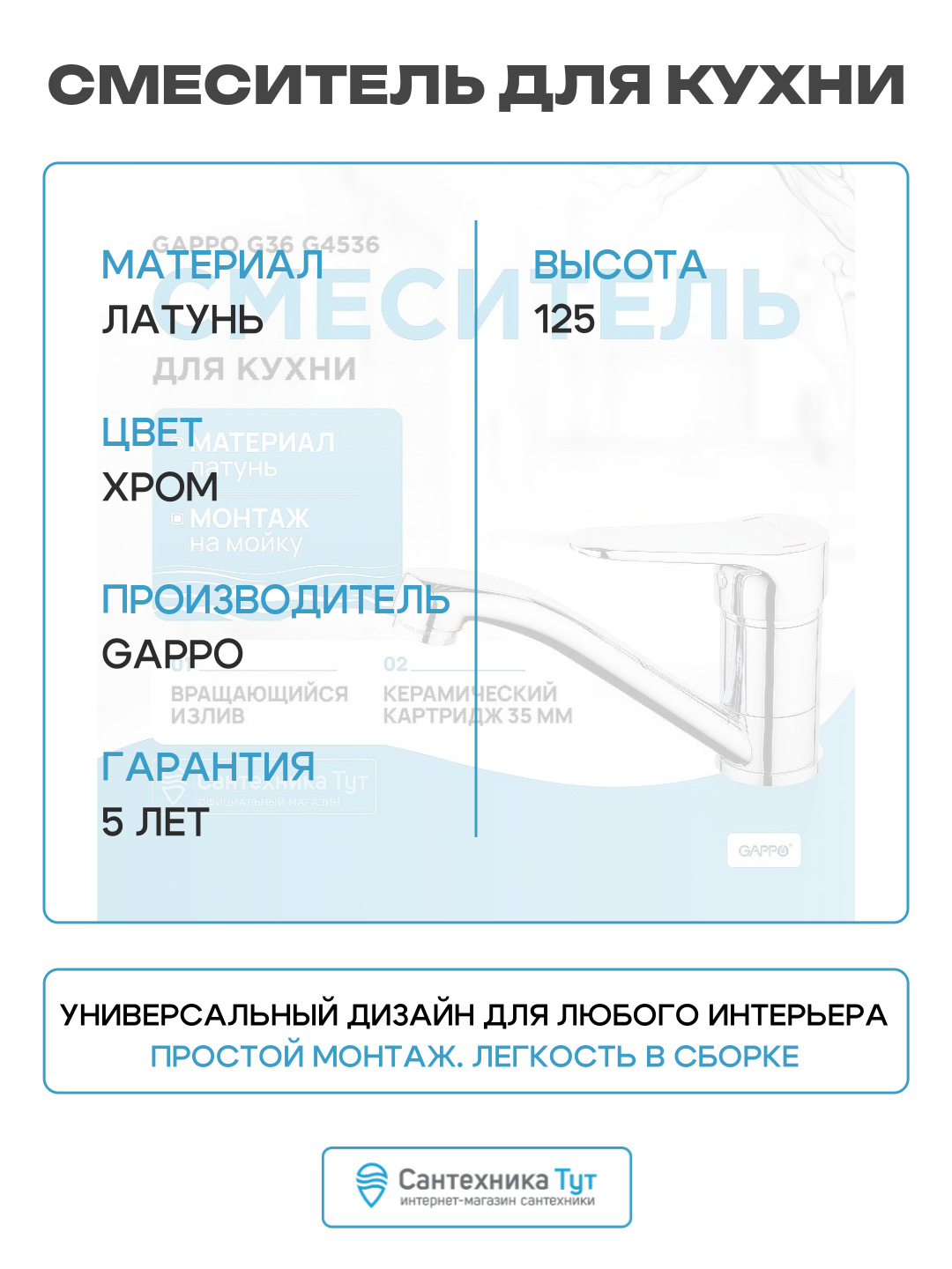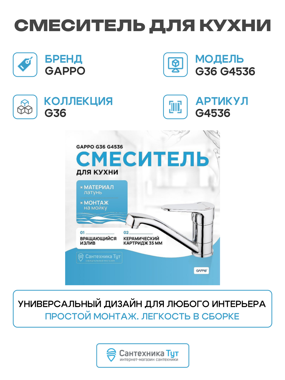 Купить Смеситель для кухни Gappo G36 G4536 Хром латунь Китай с доставкой по всей России. Смеситель для кухни Gappo G36 G4536 Хром латунь Китай: сравнение цен, характеристики, фото, актуальное наличие и цены.