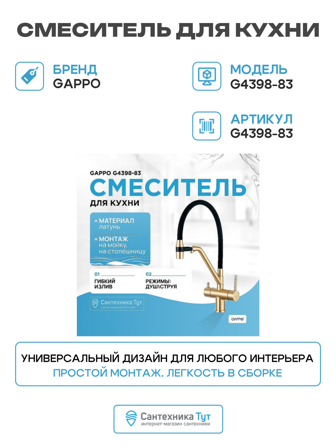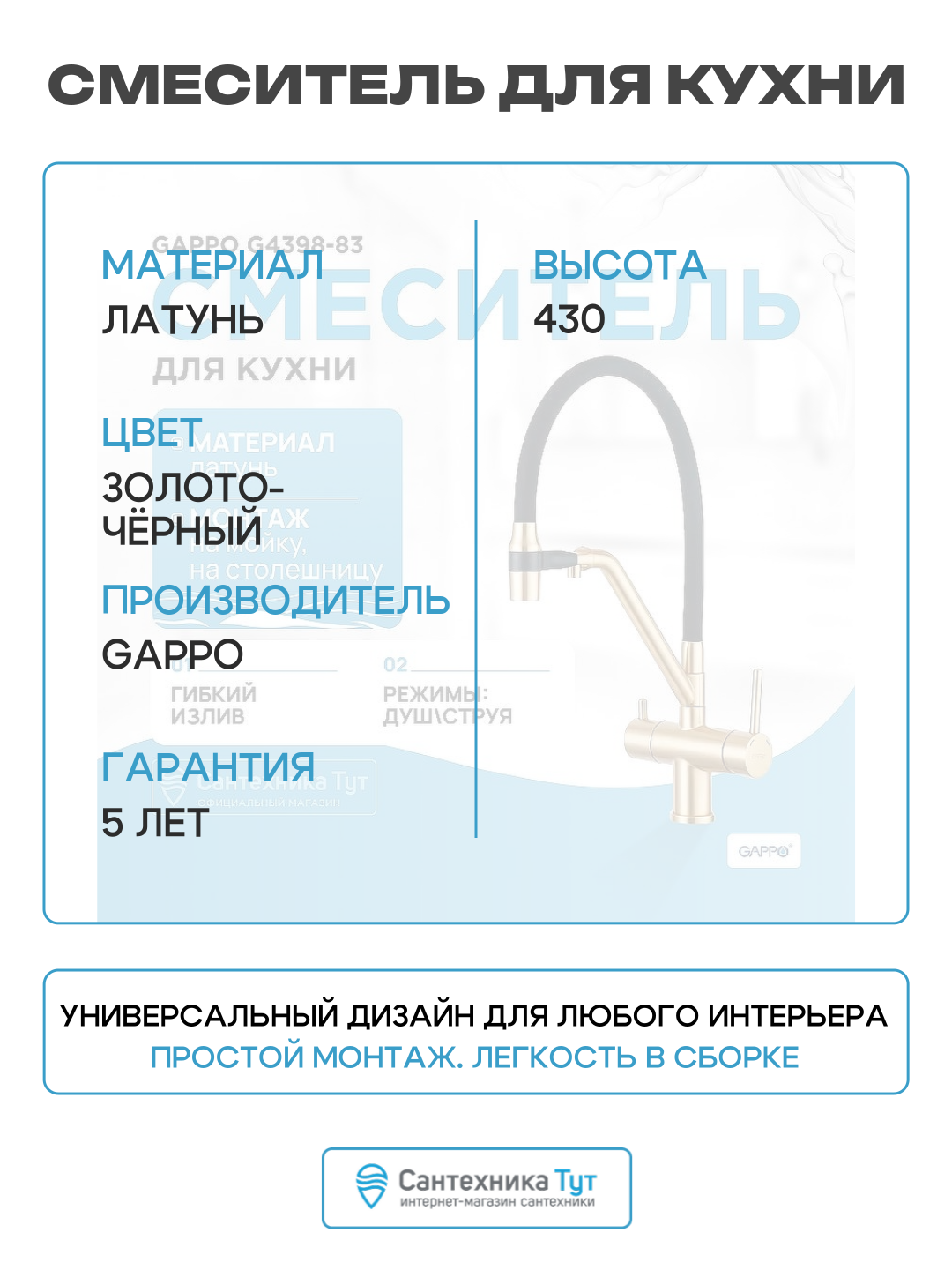 | Назначение | для душа, для кухни (мойки), для раковины (умывальника) |