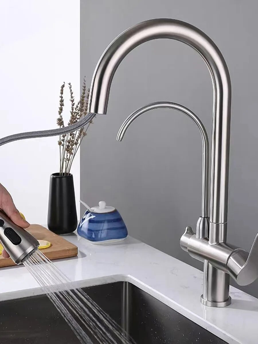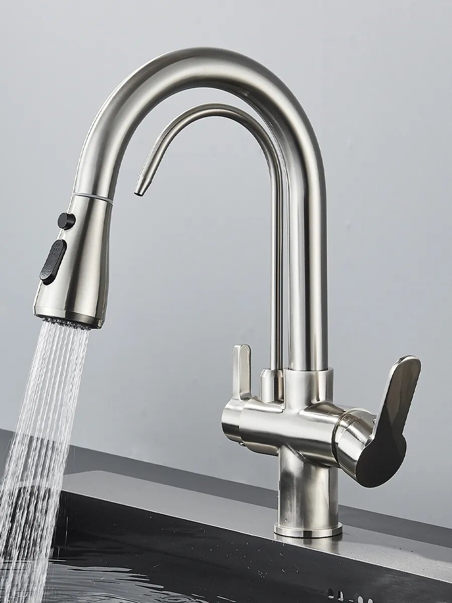 Кухонный кран с фильтром питьевой воды Richard является одной из популярных моделей труб. Из - за вращения выхода на 360 градусов этот кран раковины подходит для раковины практически любого размера и формы. Керамический фильтр может точно регулировать температуру и давление воды. Установка в кухонной раковине, раковине или в качестве крана в ванной комнате. Черный матовый кран на кухне не требует постоянной полировки и легко очищается любой тряпкой. Аэрозолятор можно легко свернуть, поэтому его можно заменить или очистить в любое время. Высокий кухонный кран подходит для любого интерьера и выглядит очень органично. При наличии водяного крана в раковине с подключением питьевой воды вам больше не нужен фильтр под раковиной или сменный фильтр в чайнике. Два независимых рычага зацепились. Гибкая ручка для глаз будет легко устанавливаться в 1 отверстие.