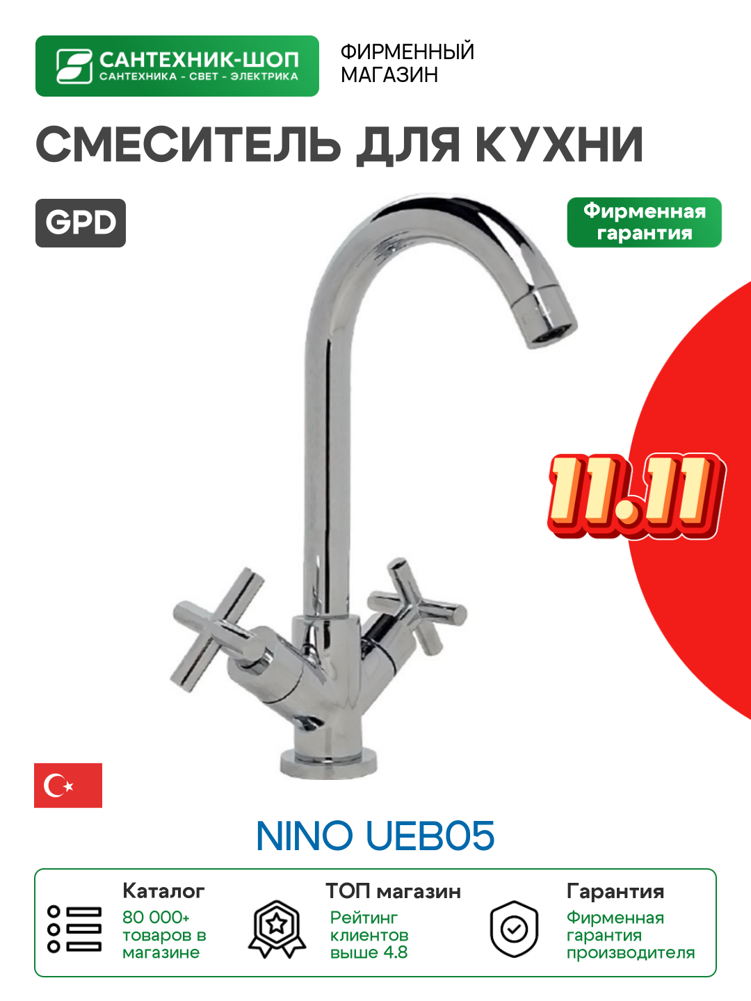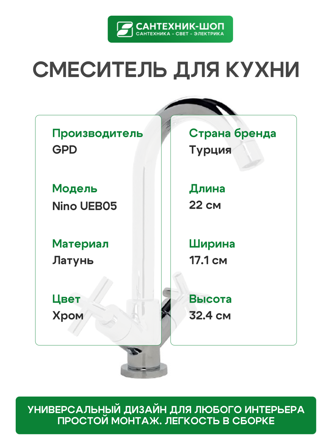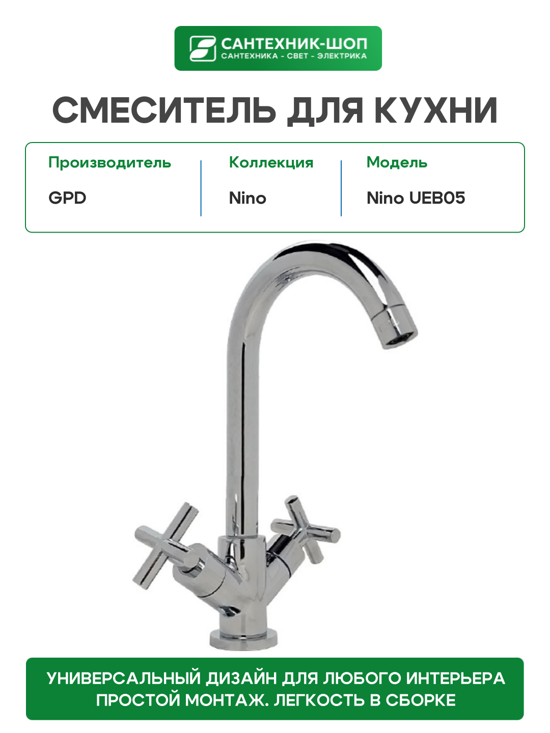 Купить Смеситель для кухни GPD Nino UEB05 Хром латунь Турция с доставкой по всей России. Смеситель для кухни GPD Nino UEB05 Хром латунь Турция: сравнение цен, характеристики, фото, актуальное наличие и цены.