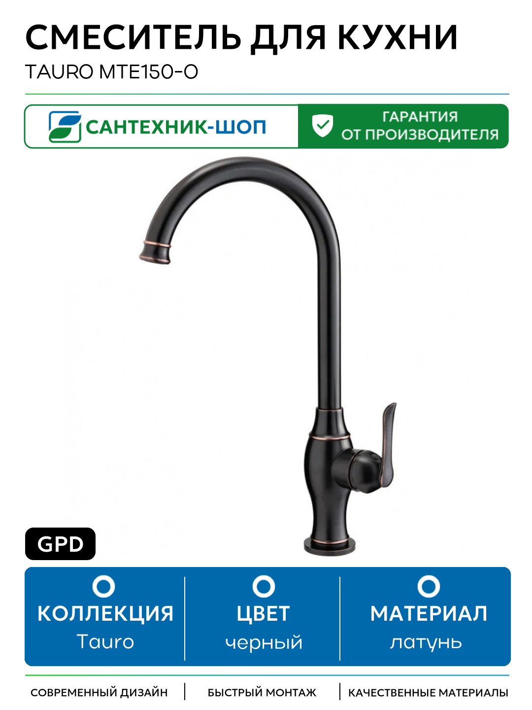 Купить Смеситель для кухни GPD Tauro MTE150-O Черный латунь Турция с доставкой по всей России. Смеситель для кухни GPD Tauro MTE150-O Черный латунь Турция: сравнение цен, характеристики, фото, актуальное наличие и цены.