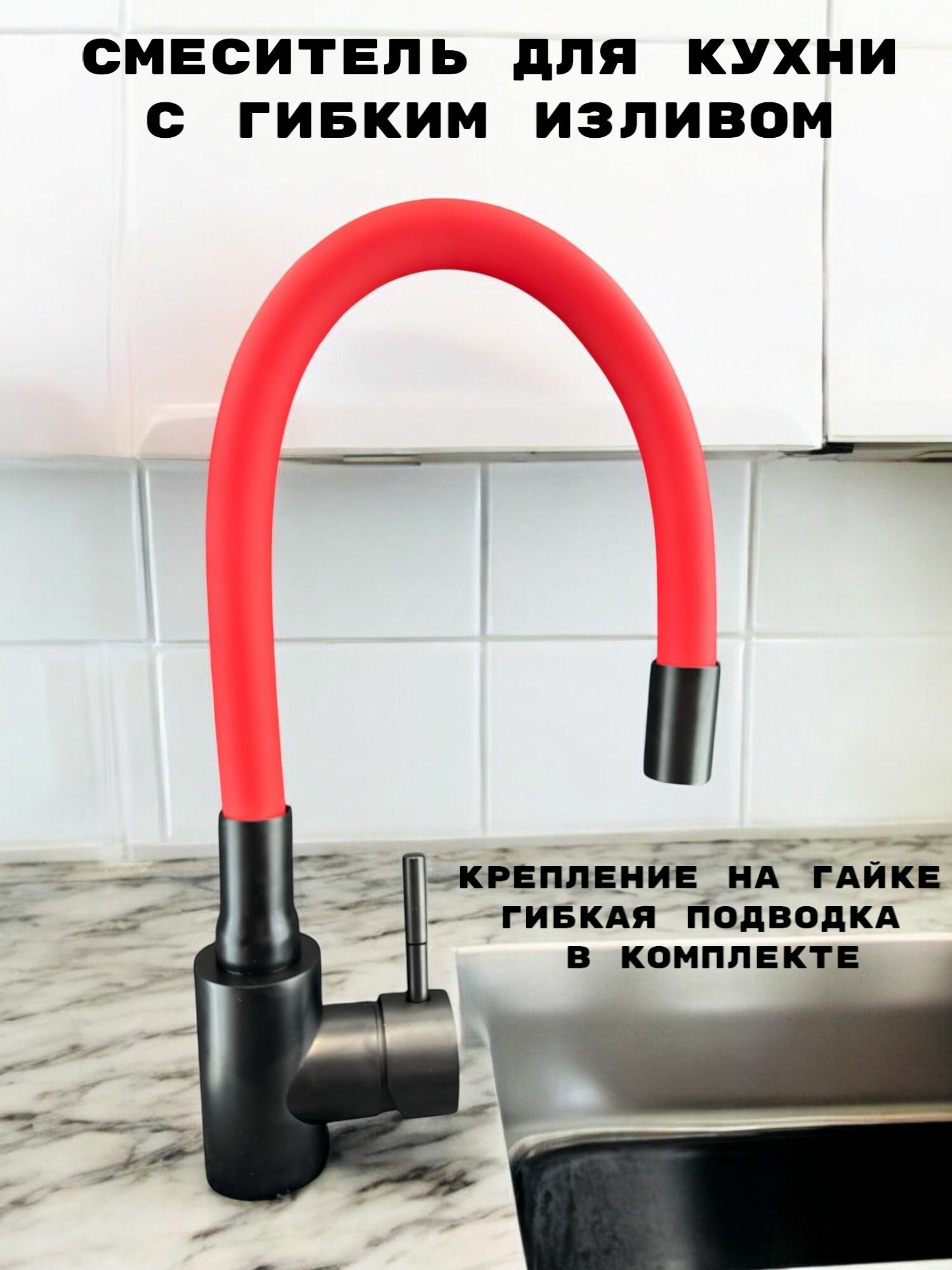 Смеситель для кухни GRIALE черный с гибким красным силиконовым изливом: сравнение цен, характеристики, фото, актуальное наличие и цены.