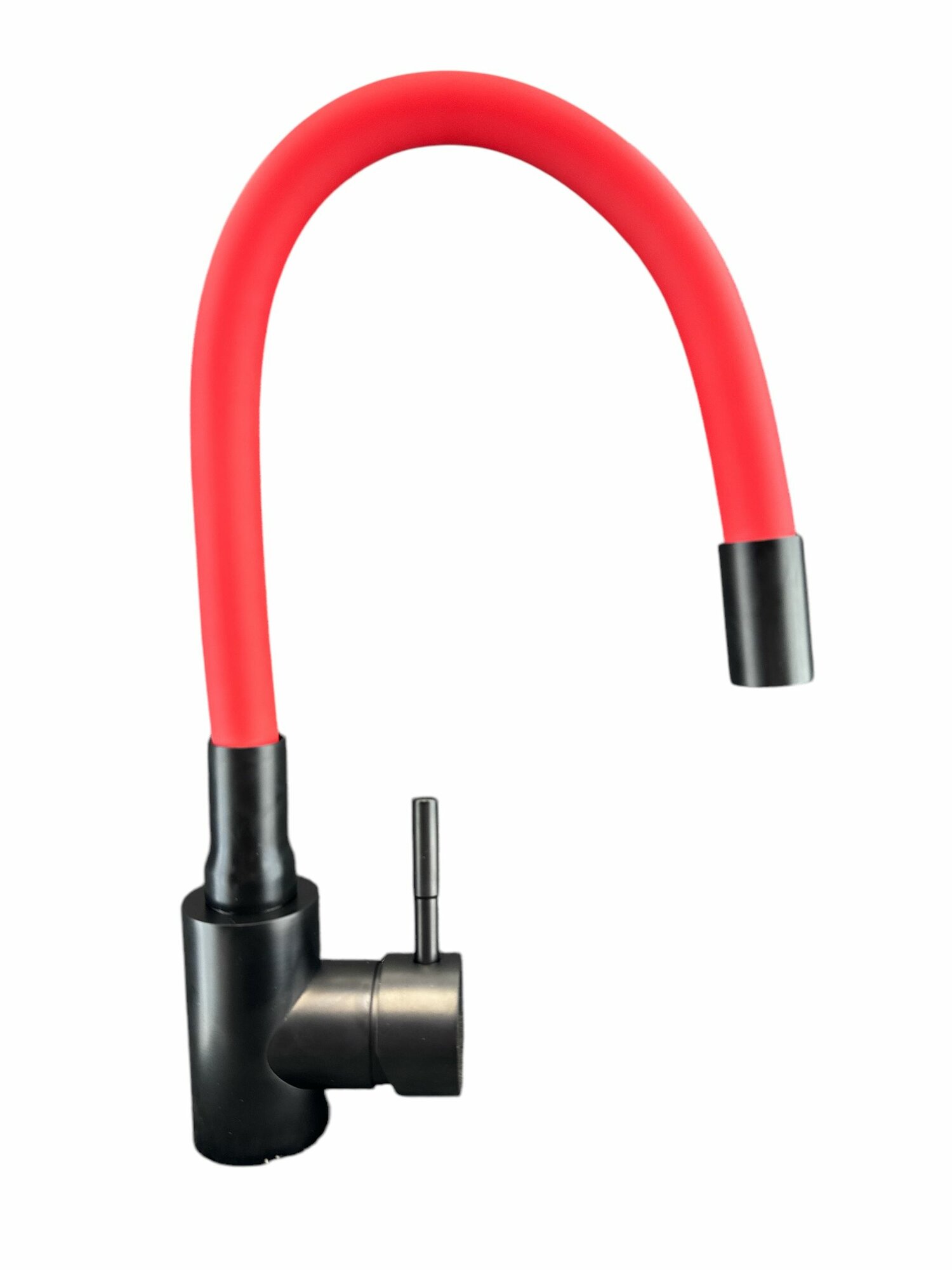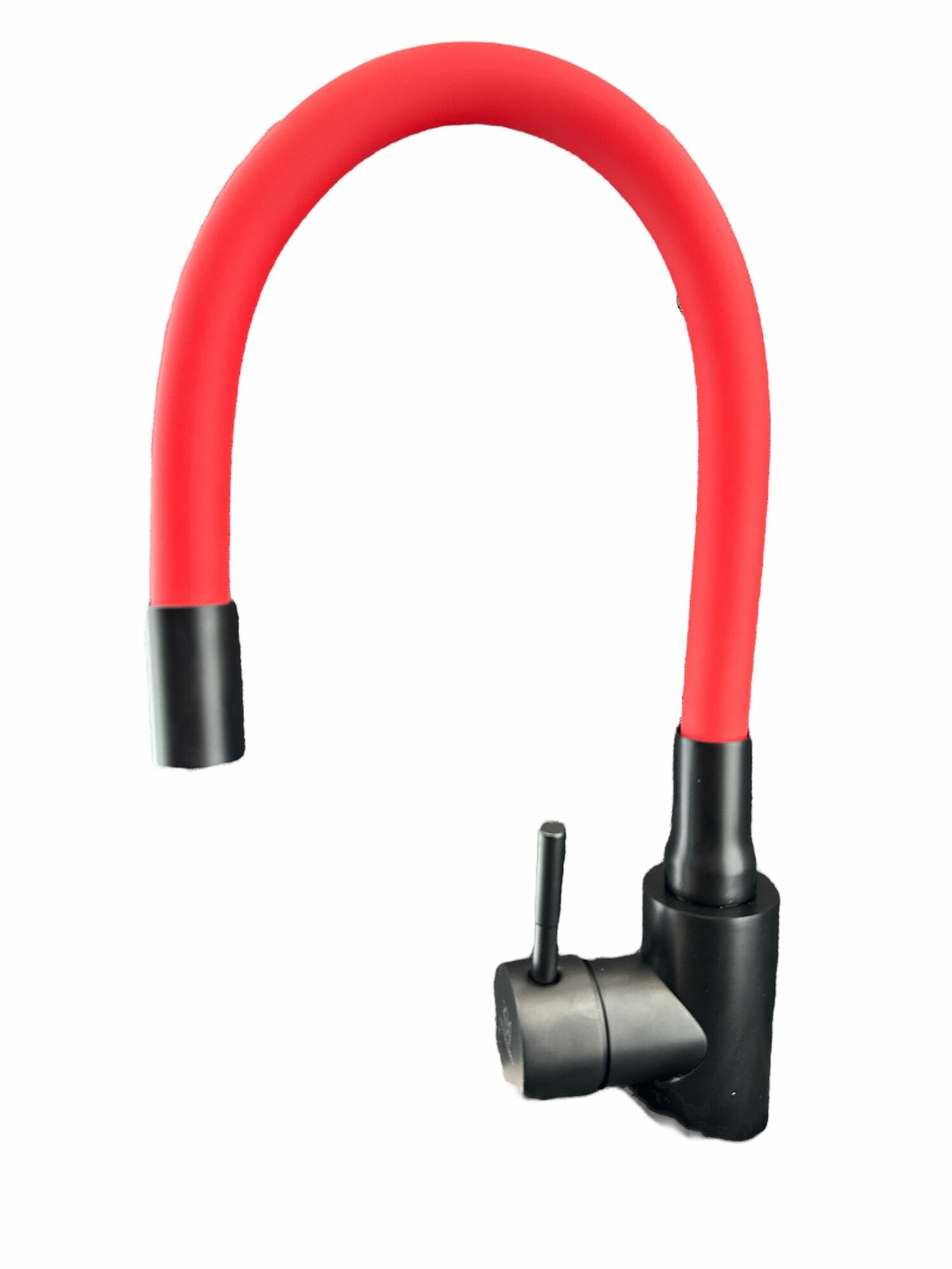 Смеситель для кухни GRIALE черный с гибким красным силиконовым изливом