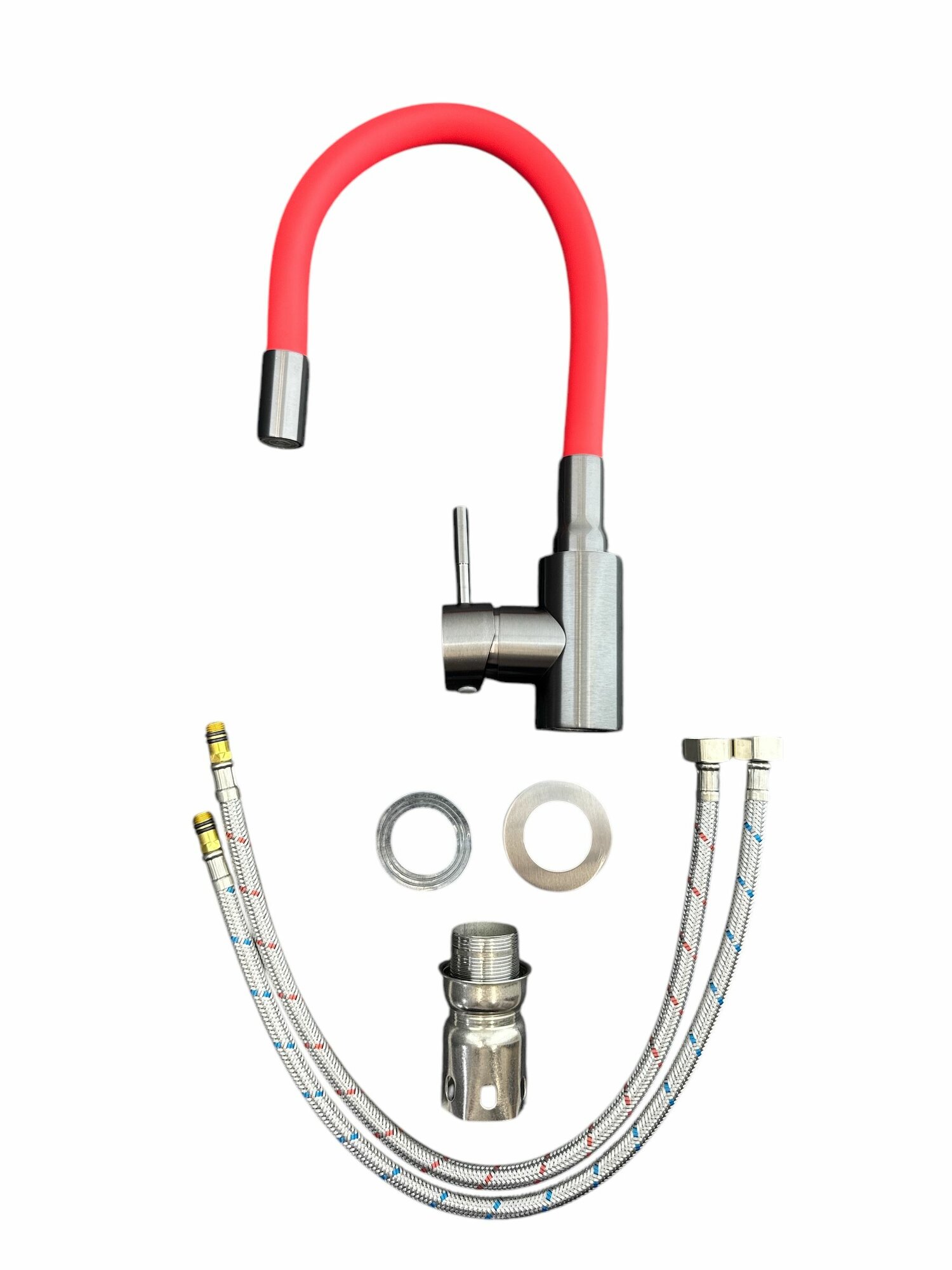 Смеситель для кухни GRIALE графит с гибким красным силиконовым изливом