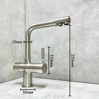 Смеситель для кухни бренда Haiba. Изготовлен из латуни. Картридж 35 мм. Укомплектован аэратором. Гибкая подводка 40 см. С поворотным изливом.