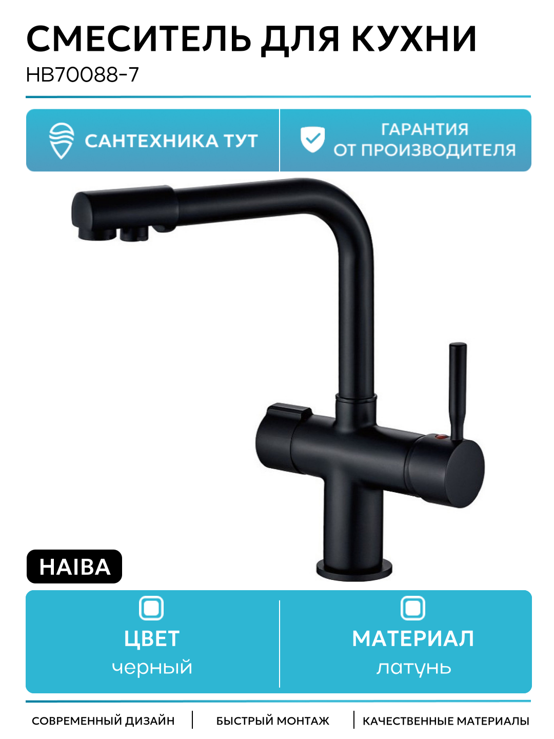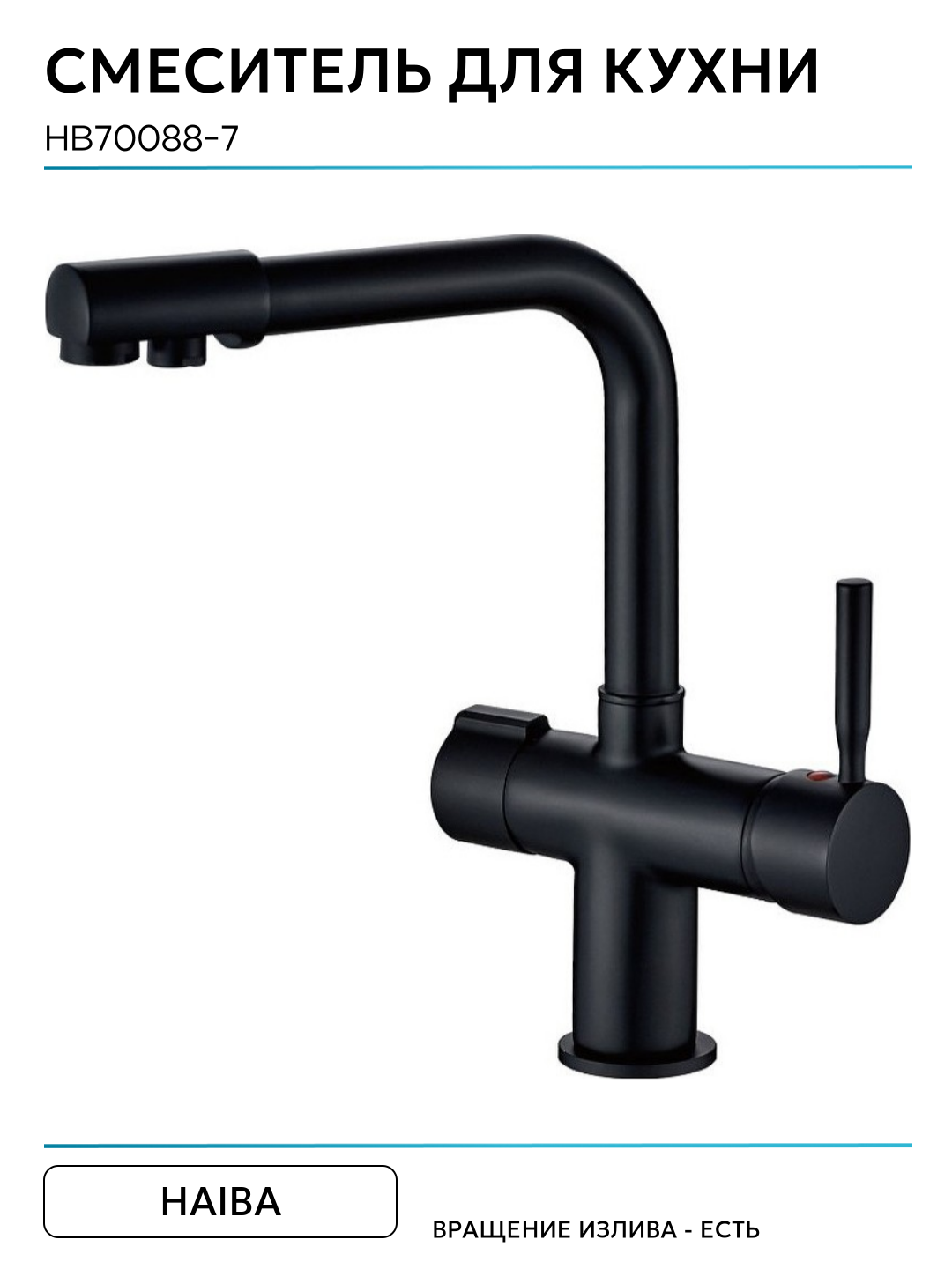 Смеситель для кухни Haiba HB70088-7 Черный латунь Китай: сравнение цен, характеристики, фото, актуальное наличие и цены.