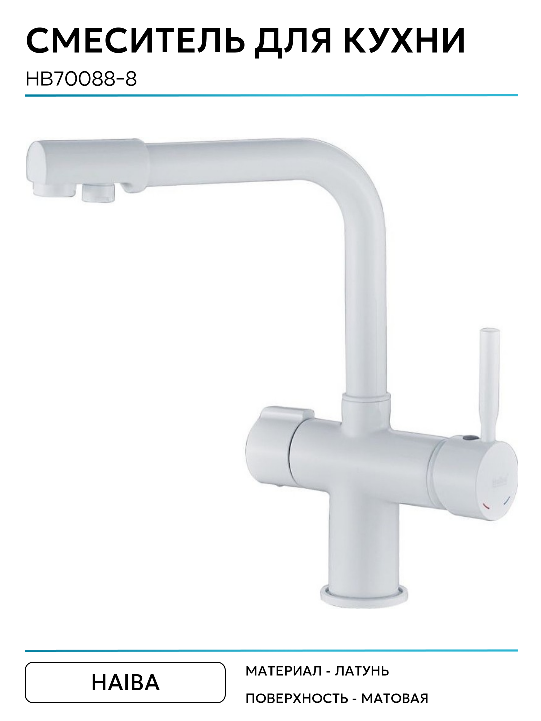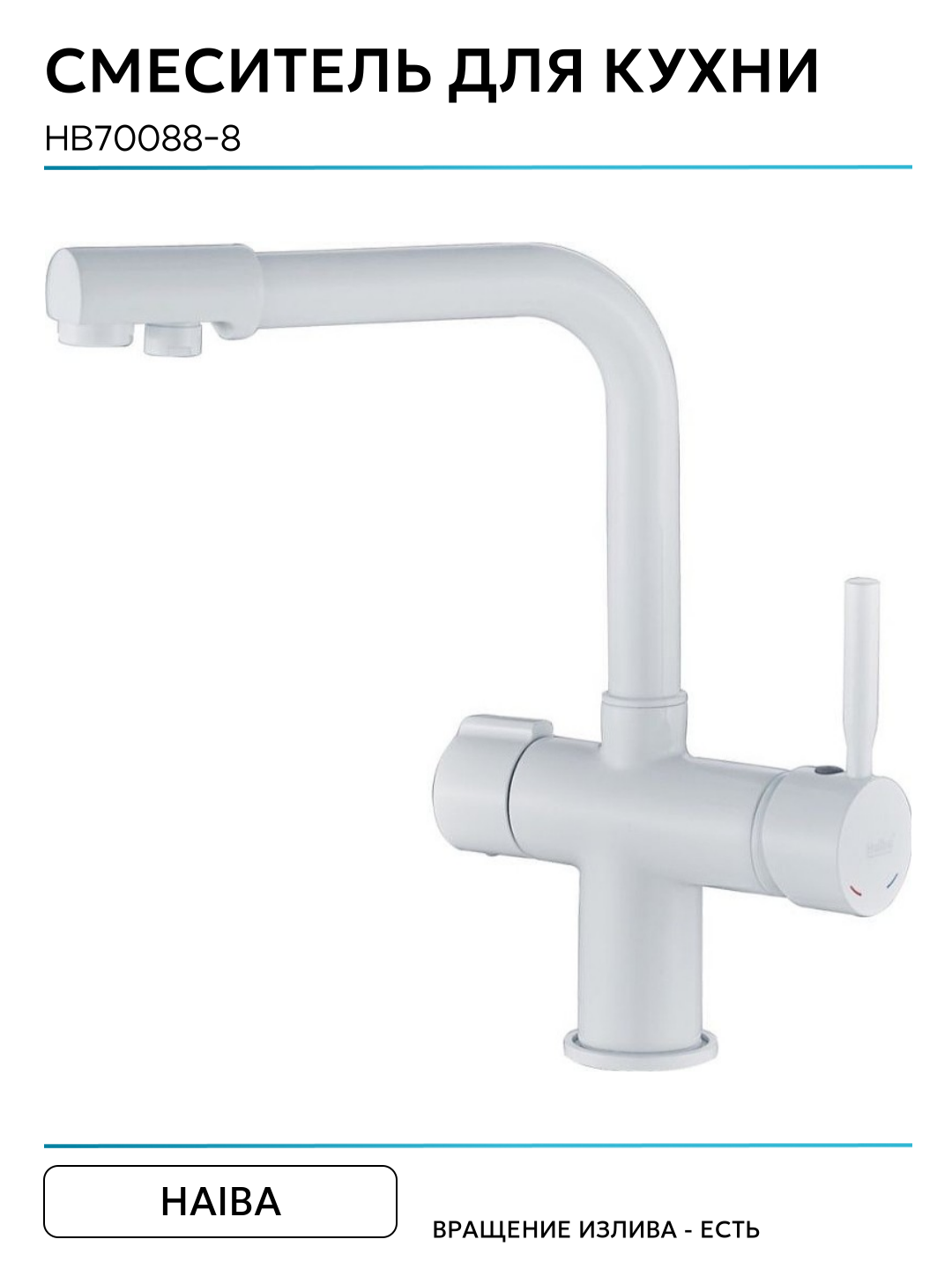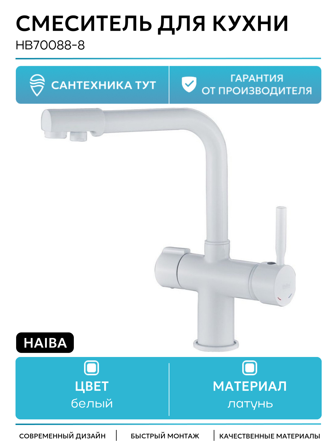Смеситель для кухни Haiba HB70088-8 Белый латунь Китай: сравнение цен, характеристики, фото, актуальное наличие и цены.