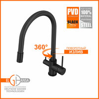 | Тип излива | гибкий, для фильтрованной воды, поворотный |