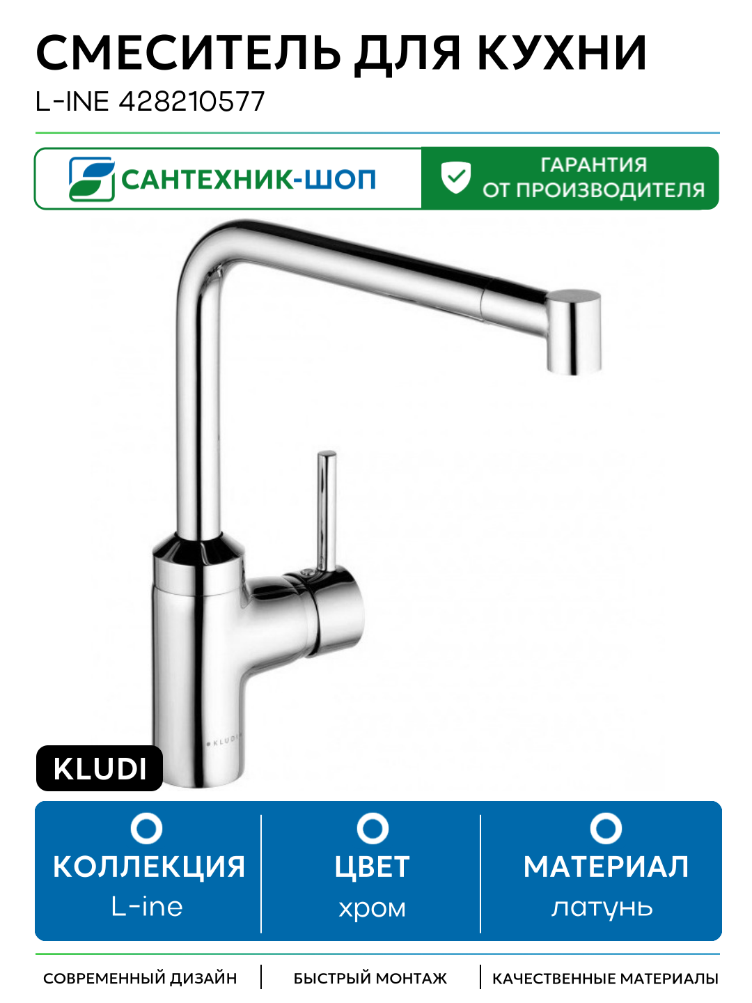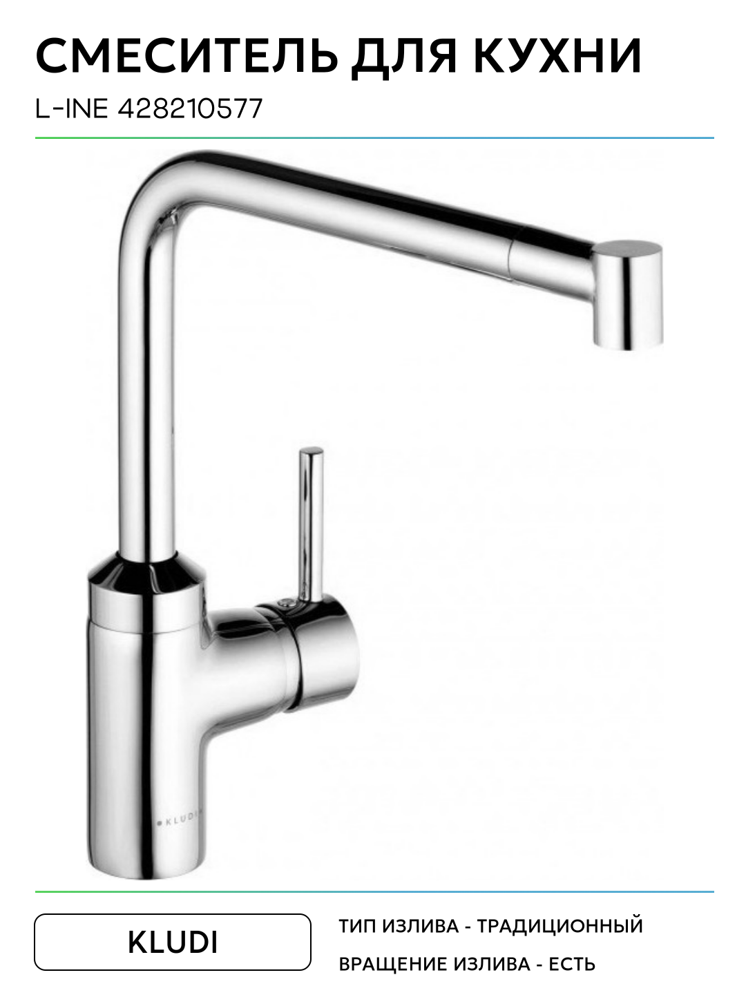 | Особенности | аэратор, встроенный фильтр, поворотный излив, система быстрого монтажа |