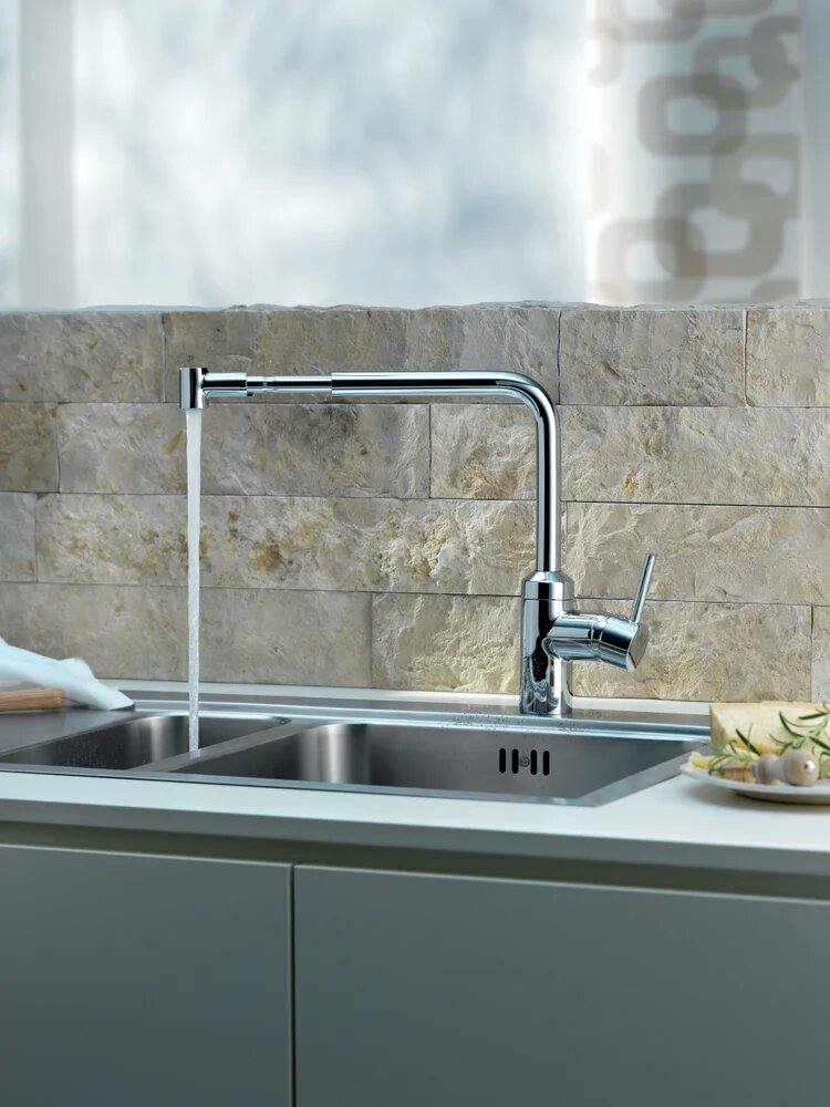 Смеситель для кухни Kludi L-ine 428210577 однорычажный, латунный, хром, с поворотным изливом, немецкий: сравнение цен, характеристики, фото, актуальное наличие и цены.