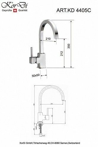| Комплектация | Смеситель для кухни KD 4405C-D19 хром, гибкая подводка с гайками 1/2" и длиной 600 мм, крепежный комплект, гарантийный талон. |