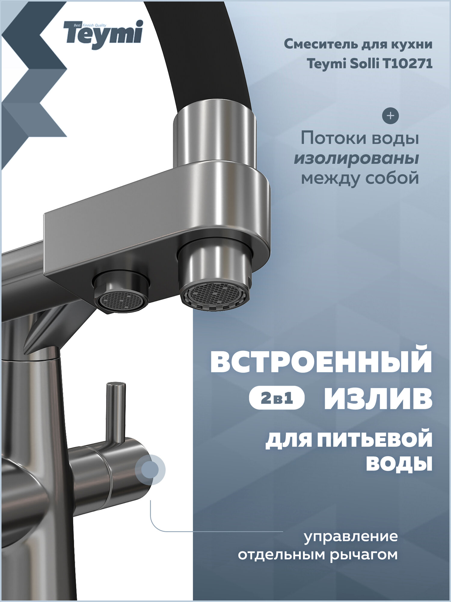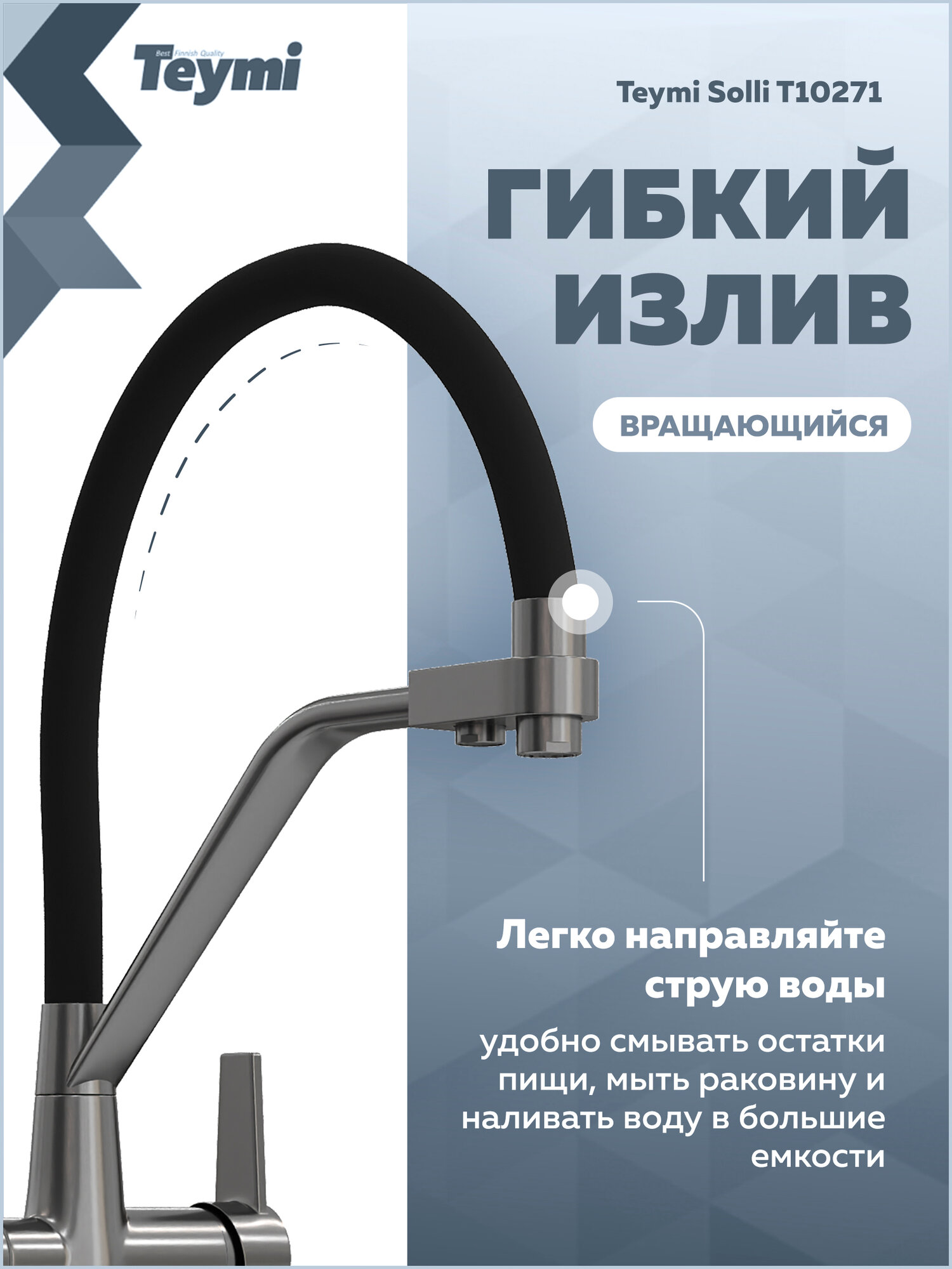 Смеситель для кухни корпус оружейная сталь излив черный Teymi Solli T10271: сравнение цен, характеристики, фото, актуальное наличие и цены.