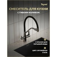 Купить Смеситель для кухни корпус оружейная сталь излив черный Teymi Solli T10271 с доставкой по всей России.
