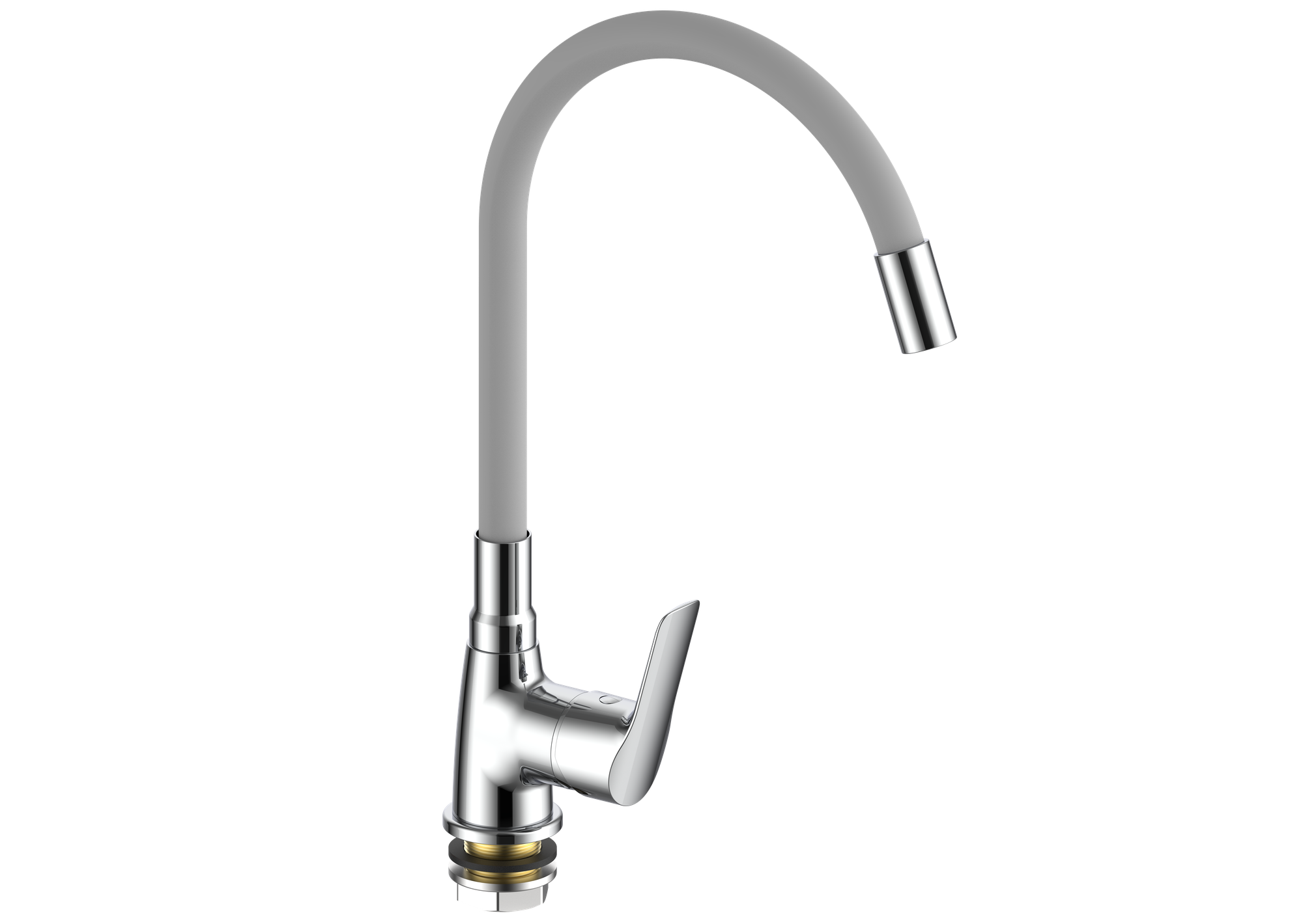 Смеситель для кухни латунный с гибким изливом серый / гарантия 7 лет / коллекция Spring