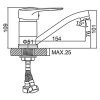 | Дополнительная информация | Крепление на раковине с помощью обжимной гайки. На кухонную мойку будет сильно низкий и короткий |