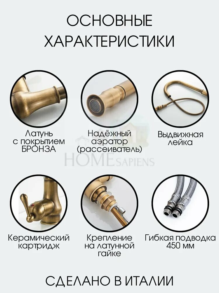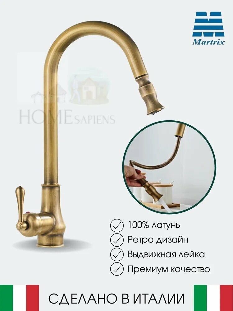 Смеситель для кухни MATRIX с выдвижным аэратором (бронза) ретро итальянский: сравнение цен, характеристики, фото, актуальное наличие и цены.