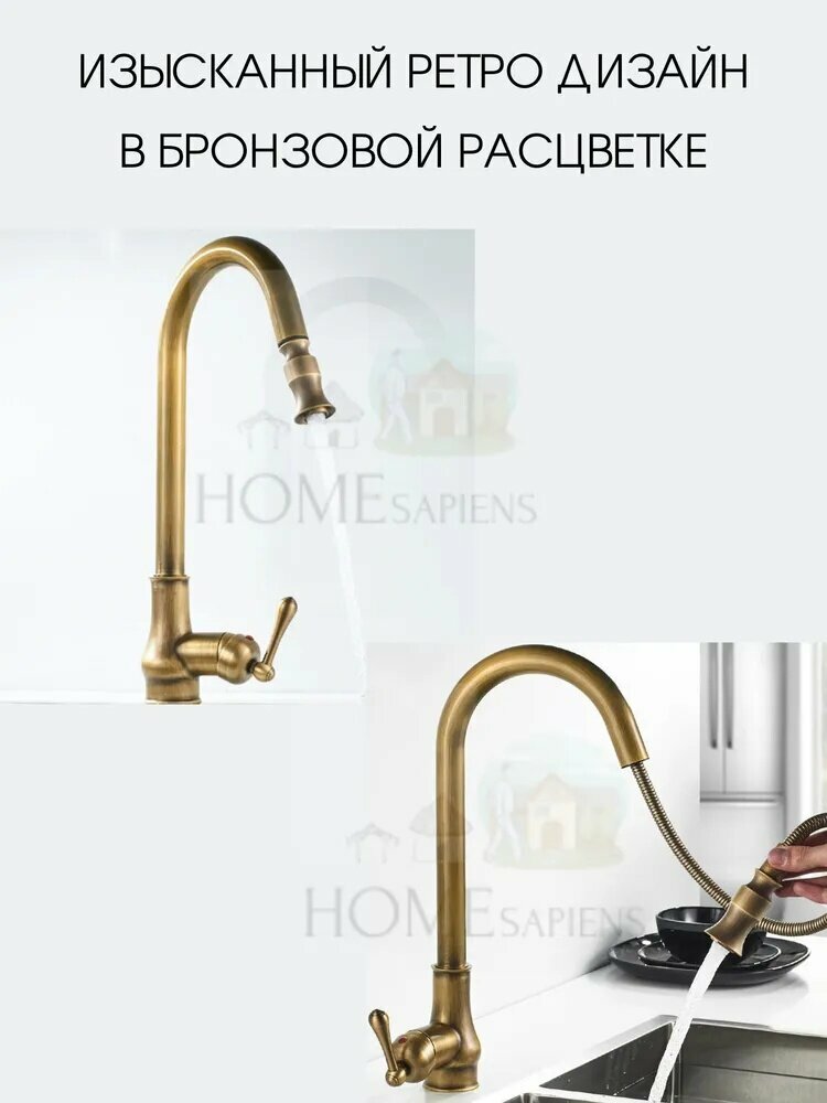 Купить Смеситель для кухни MATRIX с выдвижным аэратором (бронза) ретро итальянский с доставкой по всей России.