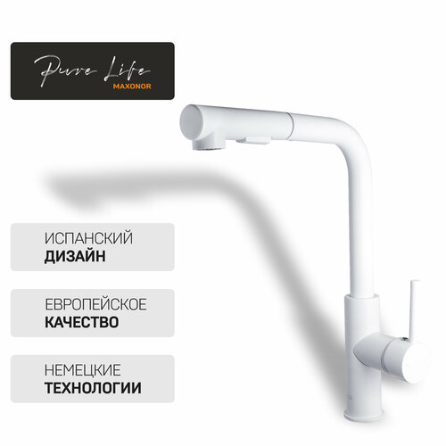 Смеситель для кухни с выдвижной лейкой и душем Maxonor PURE LIFE SUPERIOR PL4287-8 Белый матовый Латунь: сравнение цен, характеристики, фото, актуальное наличие и цены.