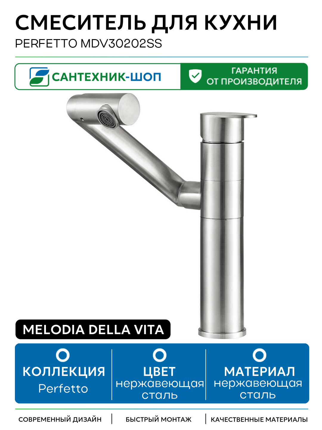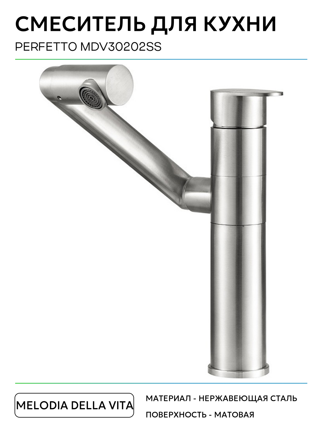 Смеситель для кухни Melodia della vita Perfetto MDV30202ss Нержавеющая сталь нержавеющая сталь Россия: сравнение цен, характеристики, фото, актуальное наличие и цены.