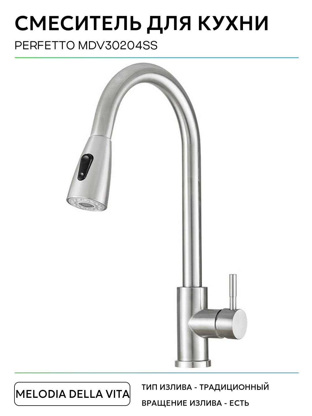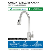 Смеситель для кухни Melodia della vita Perfetto MDV30204ss Нержавеющая сталь нержавеющая сталь Россия: сравнение цен, характеристики, фото, актуальное наличие и цены.