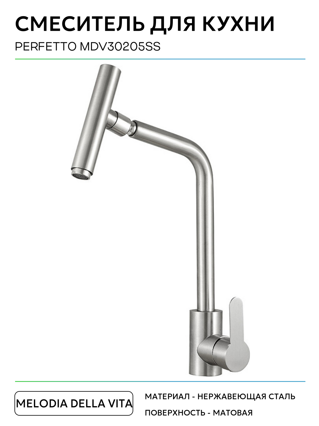 Смеситель для кухни Melodia della vita Perfetto MDV30205ss Нержавеющая сталь нержавеющая сталь Россия: сравнение цен, характеристики, фото, актуальное наличие и цены.
