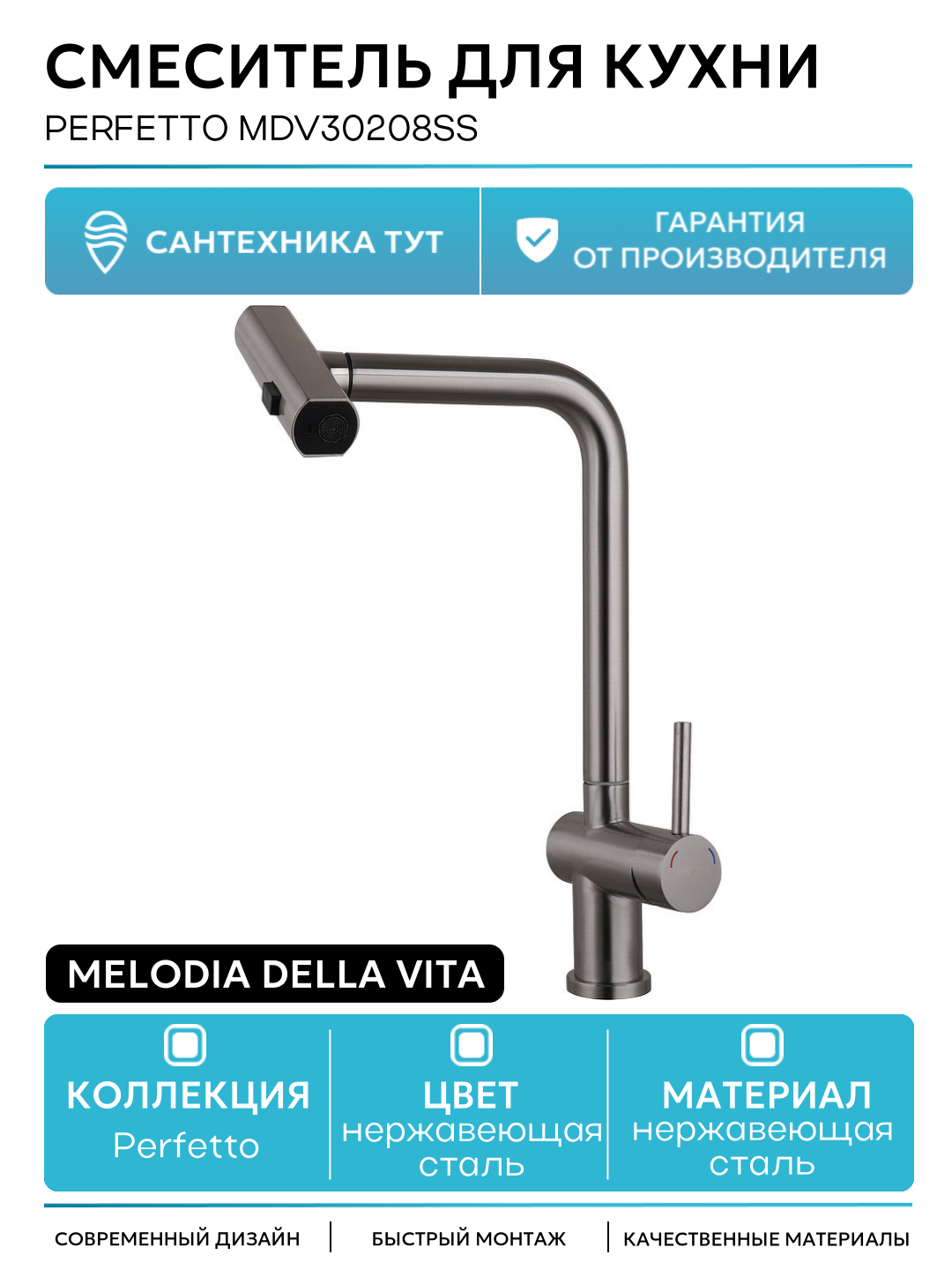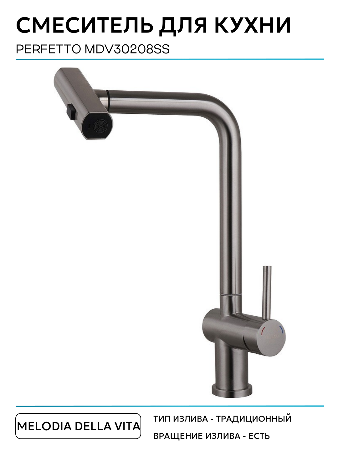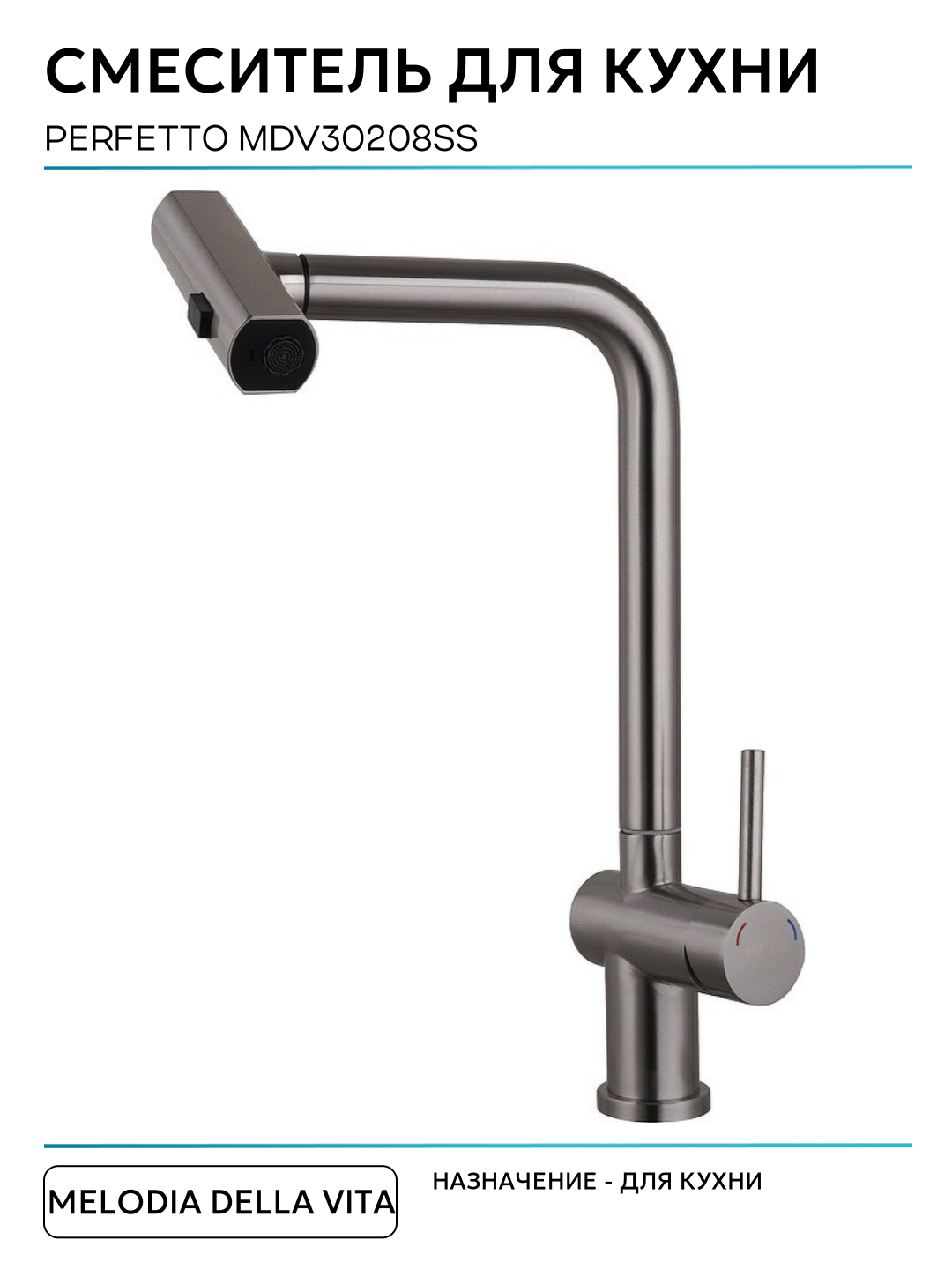 Смеситель для кухни Melodia della vita Perfetto MDV30208ss Нержавеющая сталь нержавеющая сталь Россия: сравнение цен, характеристики, фото, актуальное наличие и цены.