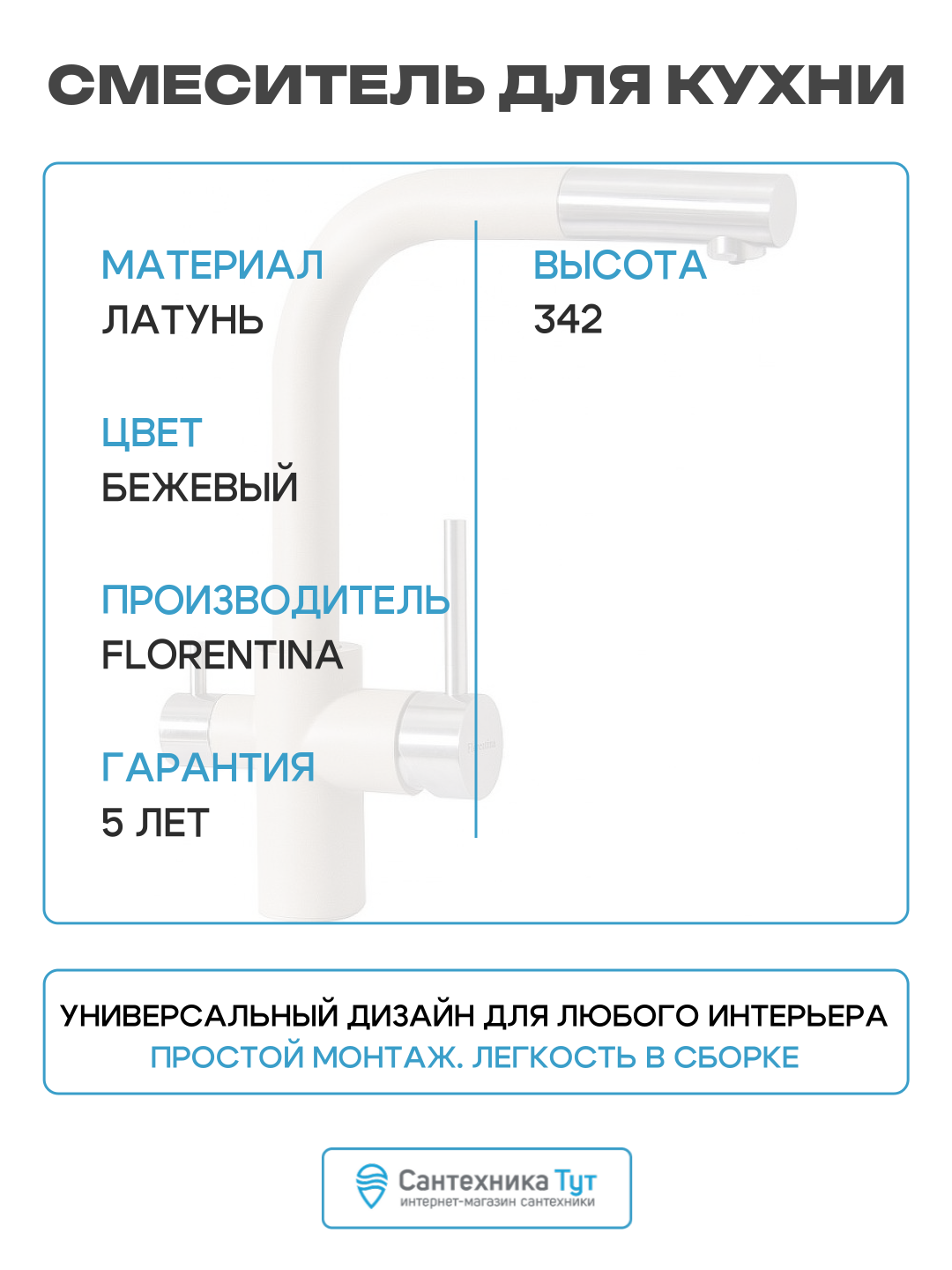 Смеситель для кухни Florentina Кристалл 333.32H.2123.107 Песочный латунь Россия: сравнение цен, характеристики, фото, актуальное наличие и цены.