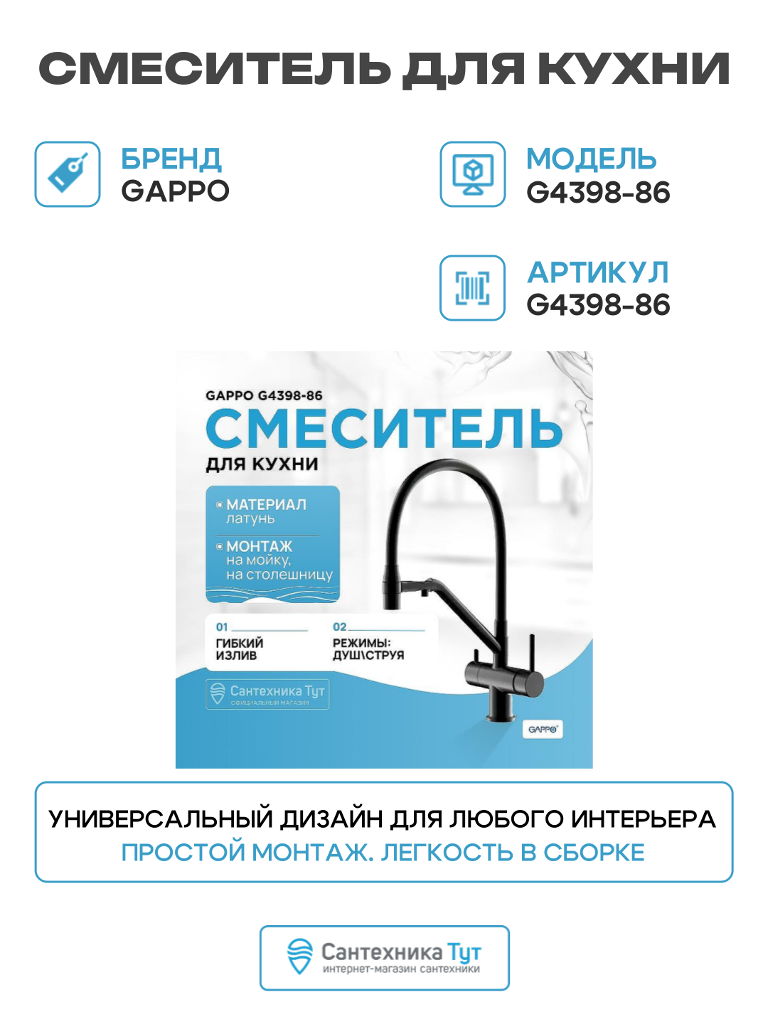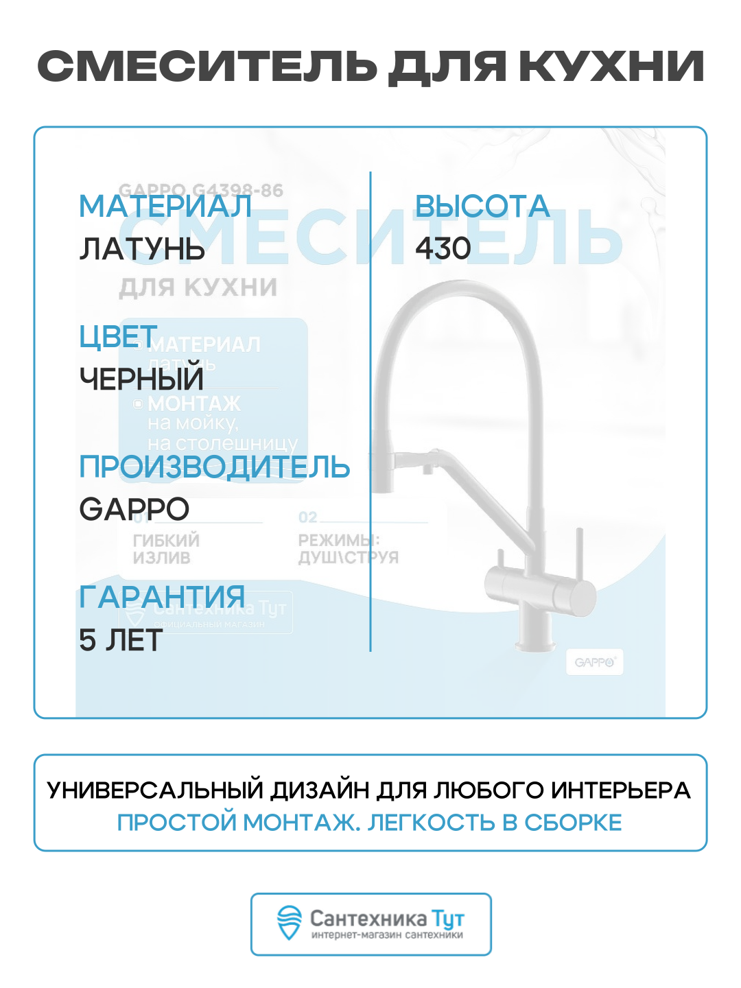 | Назначение | для душа, для кухни (мойки), для раковины (умывальника) |