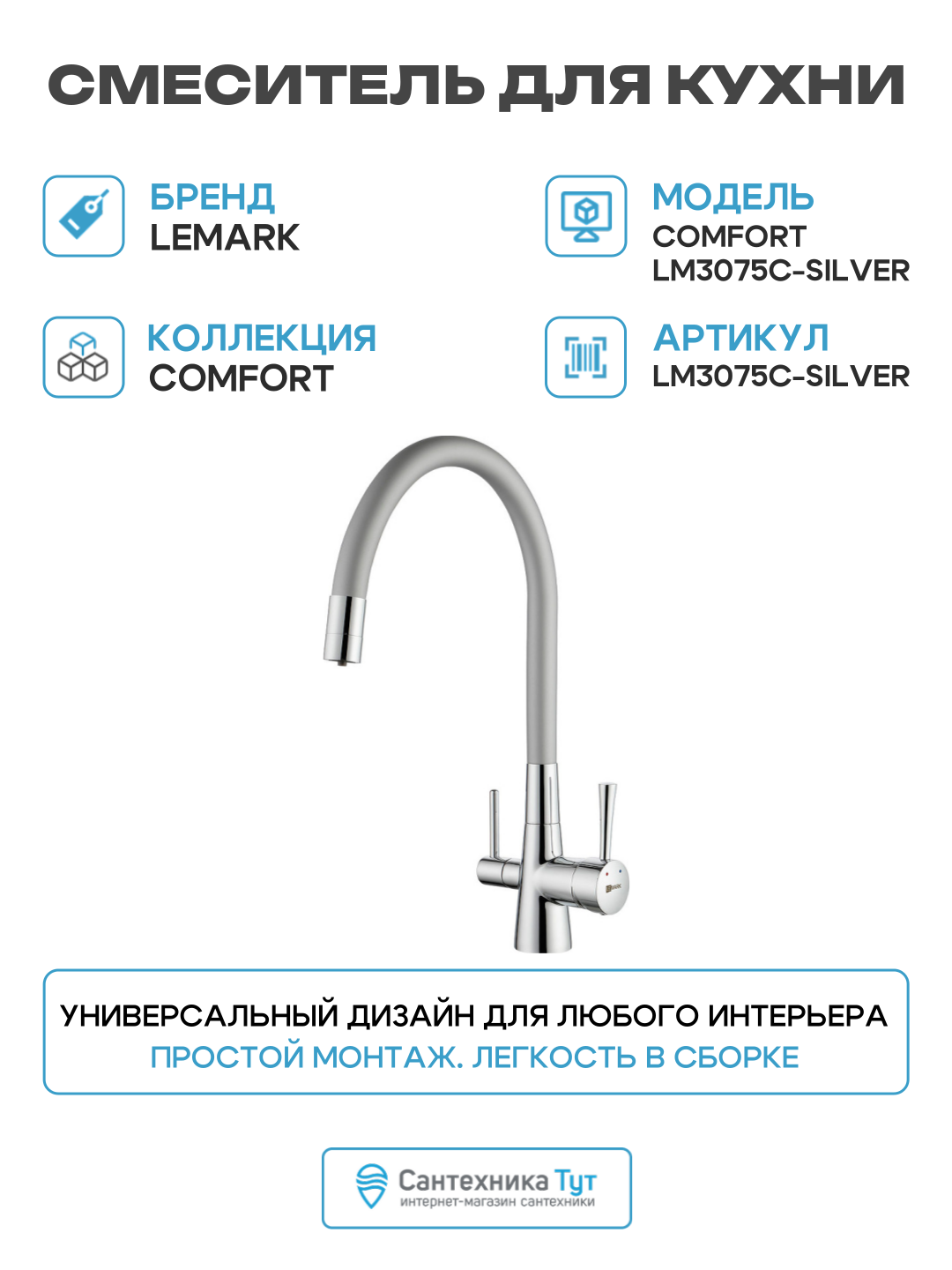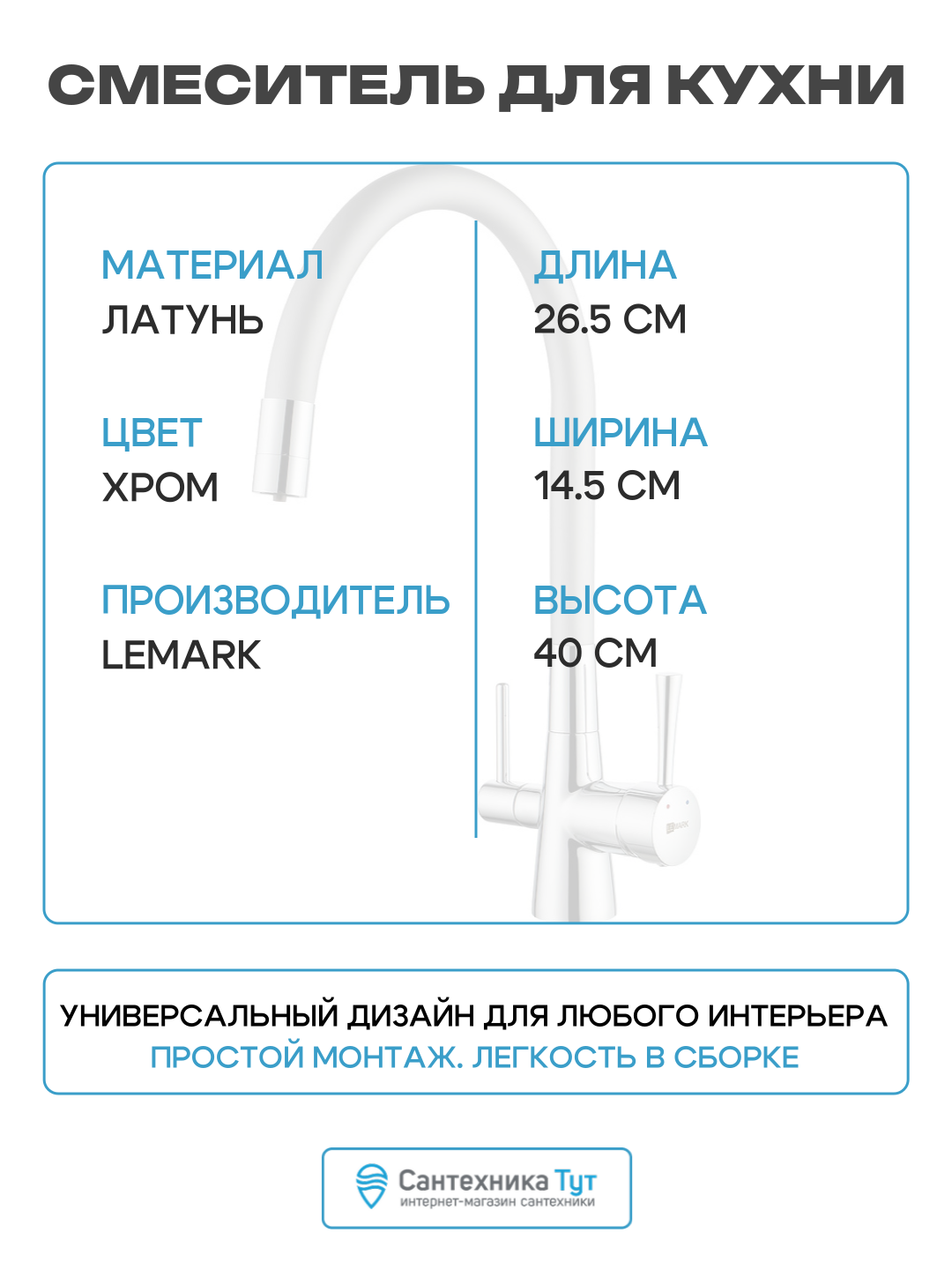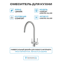 | Особенности | донный клапан, аэратор, встроенный фильтр, система быстрого монтажа, поворотный излив |