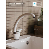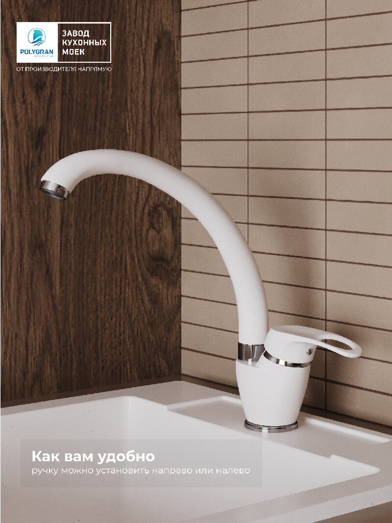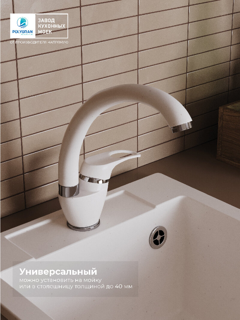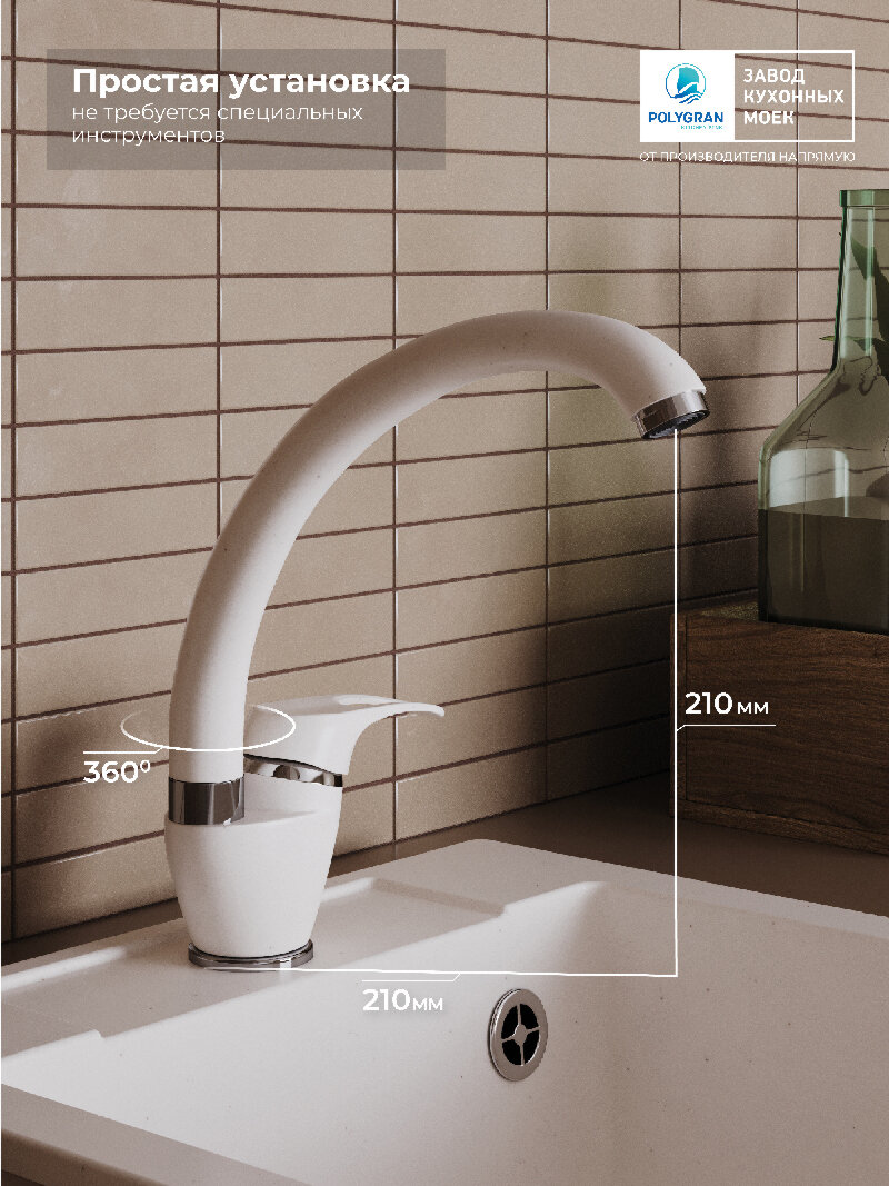 Купить Смеситель для кухни / мойки Polygran Денеб Белый (Белый Хлопок) / Латунный / Кран для кухни с доставкой по всей России.