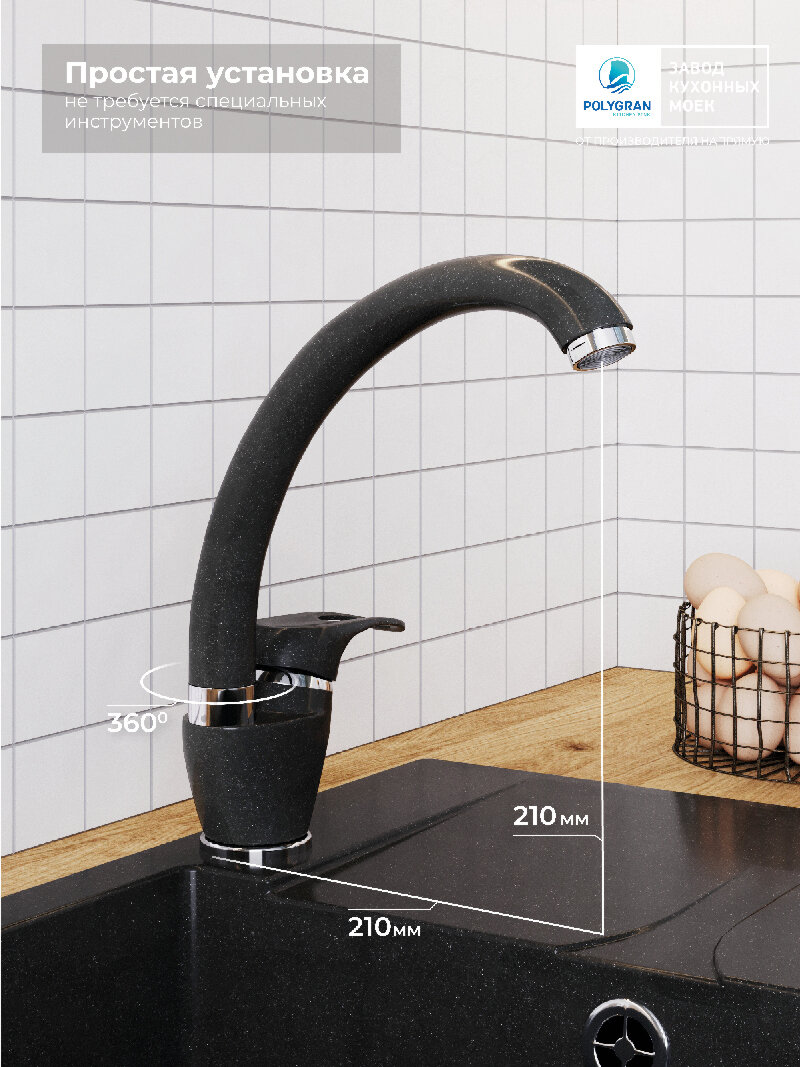 Смеситель для кухни / мойки Polygran Денеб Черный (Космос) / Латунный / Кран для кухни: сравнение цен, характеристики, фото, актуальное наличие и цены.