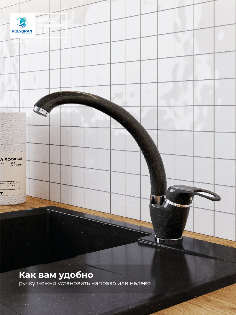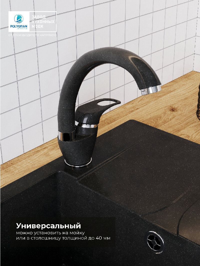 Купить Смеситель для кухни / мойки Polygran Денеб Черный (Космос) / Латунный / Кран для кухни с доставкой по всей России.