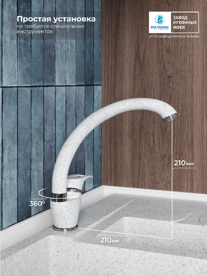 Смеситель для кухни / мойки Polygran Денеб Серый (Светло-серый №314) / Латунный / Кран для кухни: сравнение цен, характеристики, фото, актуальное наличие и цены.