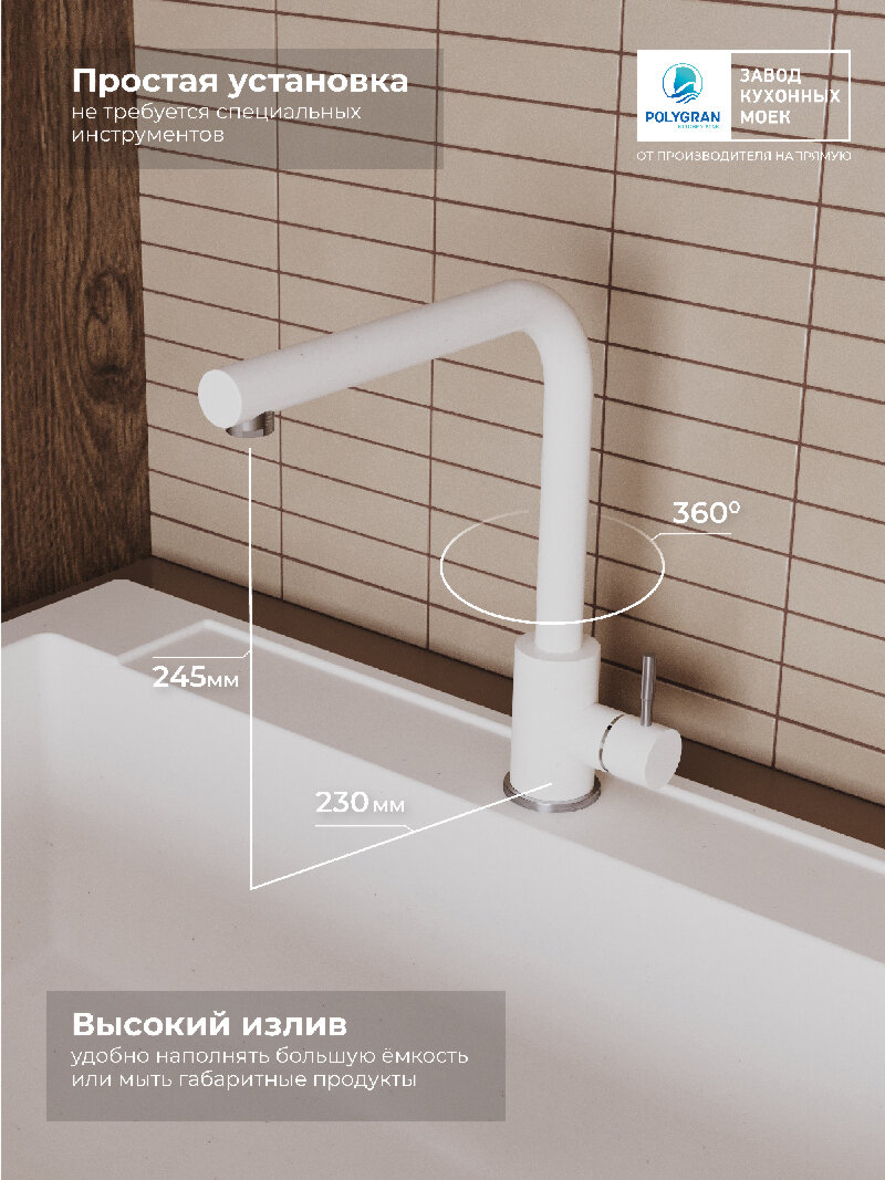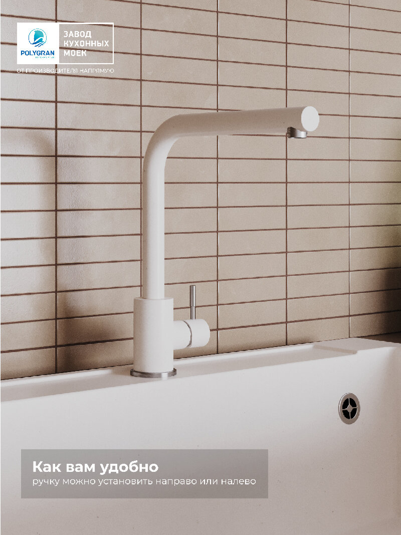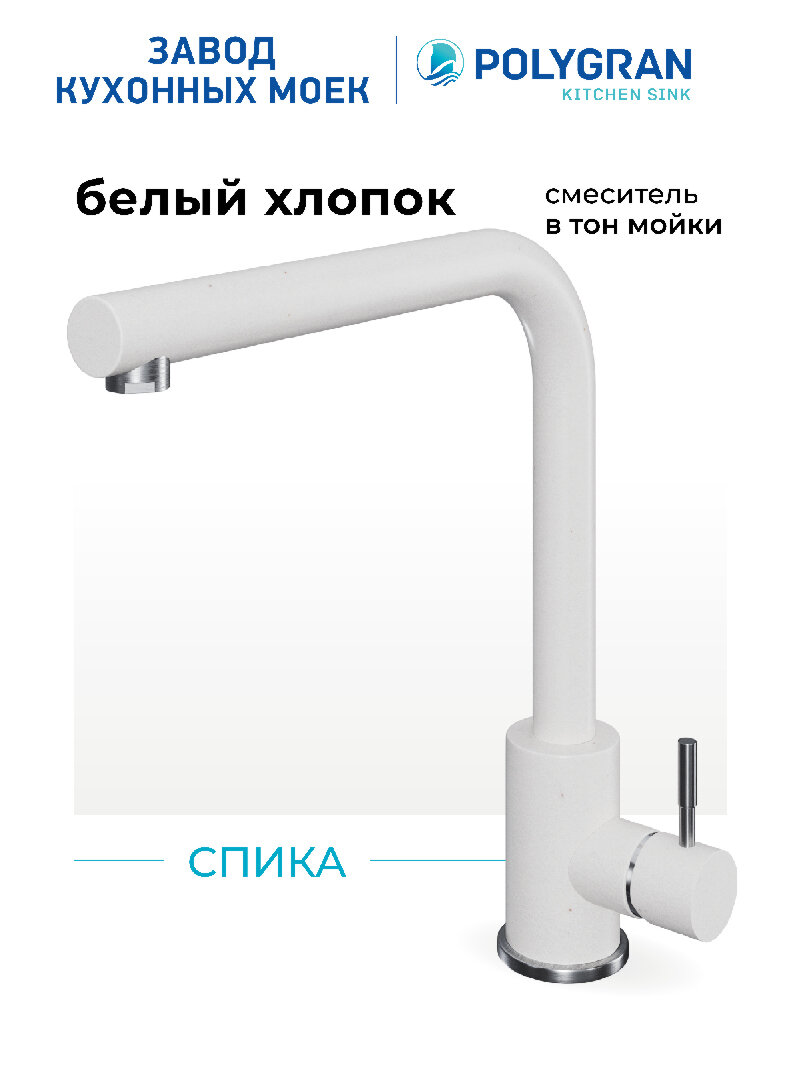 Купить Смеситель для кухни / мойки Polygran Спика Белый (Белый хлопок) / нержавеющая сталь / кран для кухни с доставкой по всей России.