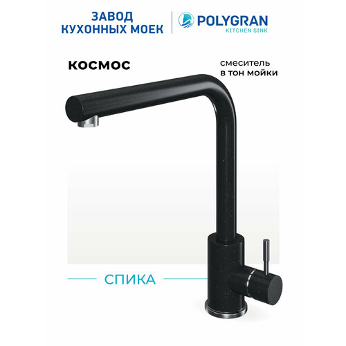 Купить Смеситель для кухни / мойки Polygran Спика черный (Космос) / нержавеющая сталь / кран для кухни с доставкой по всей России.