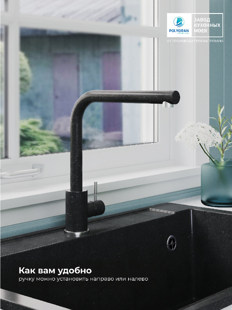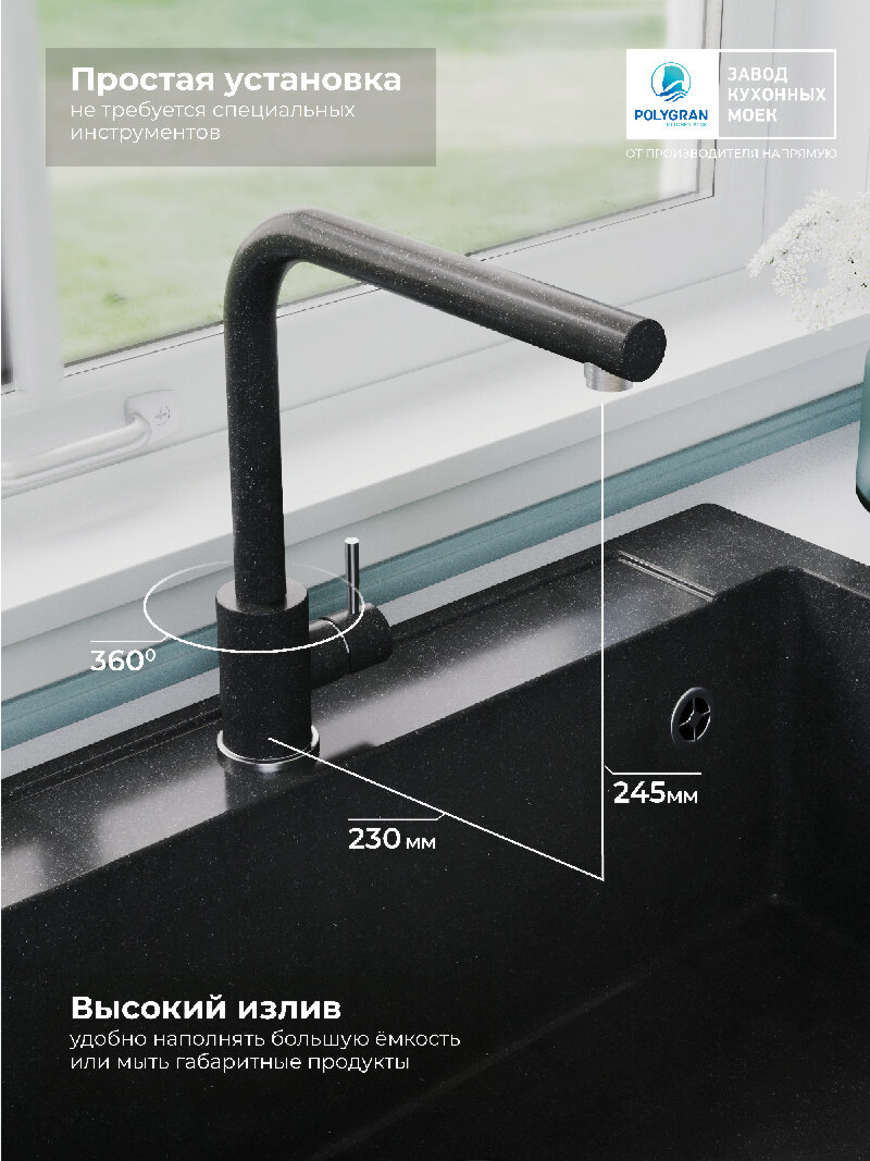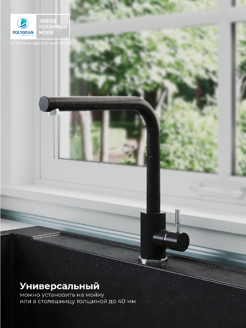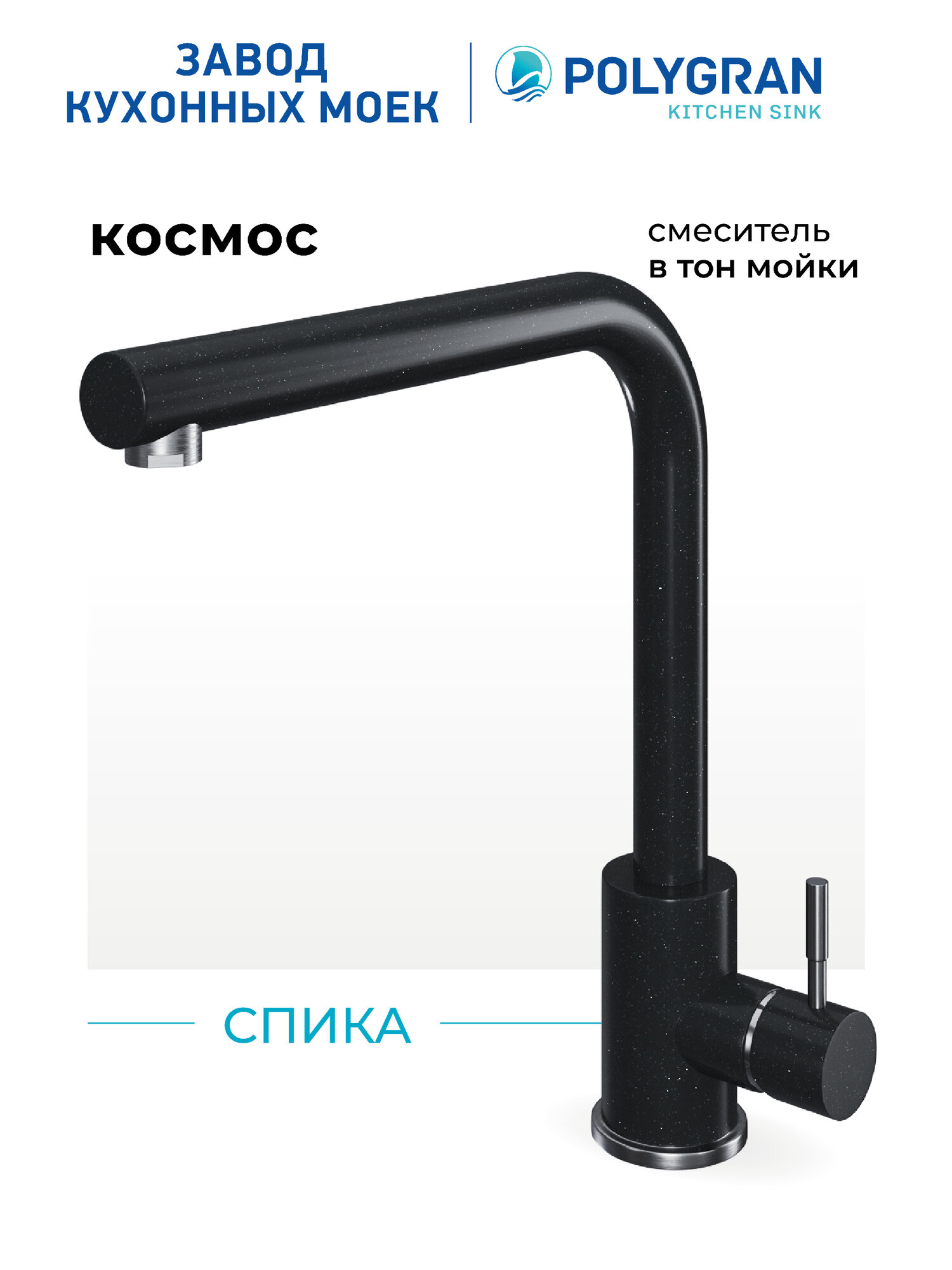 Купить Смеситель для кухни / мойки Polygran Спика черный (Космос) / нержавеющая сталь / кран для кухни с доставкой по всей России.