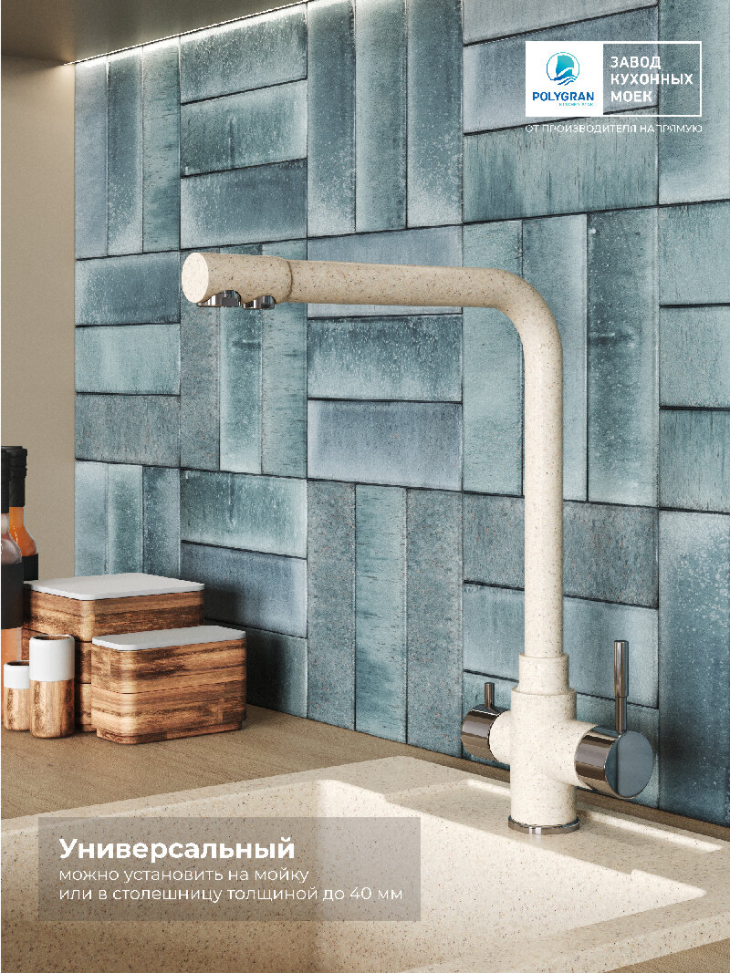 Смеситель для кухни/Цвет «Опал»/С фильтром/Нерж сталь/ Polygran Вега: сравнение цен, характеристики, фото, актуальное наличие и цены.