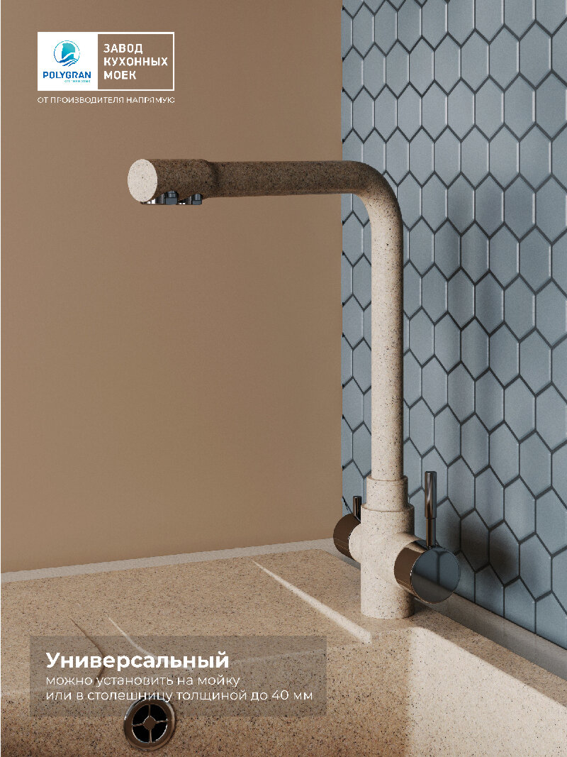 Купить Смеситель для кухни / мойки Polygran Вега Бежевый (Песочный) / С фильтром / Нержавеющая сталь / Кран для кухни с доставкой по всей России.