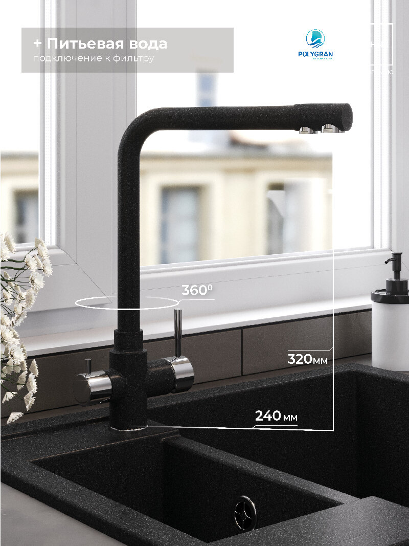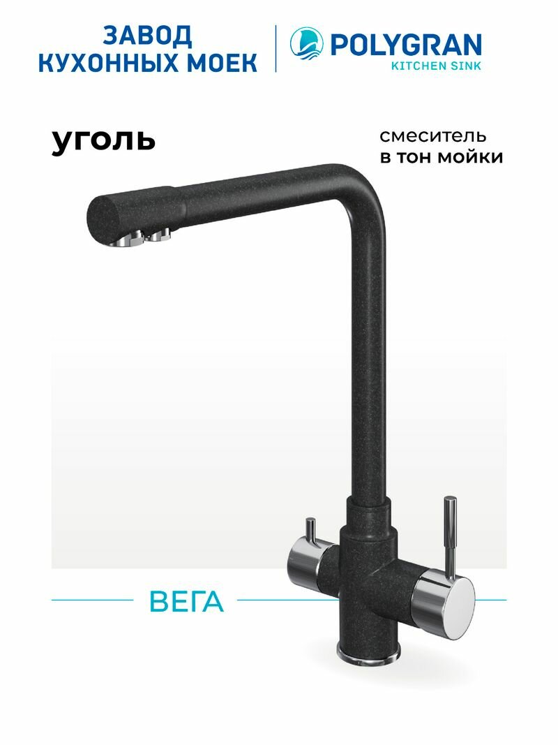 Смеситель для кухни / мойки Polygran Вега Черный (Уголь) / С фильтром / Нержавеющая сталь / Кран для кухни: сравнение цен, характеристики, фото, актуальное наличие и цены.