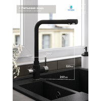 Купить Смеситель для кухни / мойки Polygran Вега Черный (Уголь) / С фильтром / Нержавеющая сталь / Кран для кухни с доставкой по всей России.
