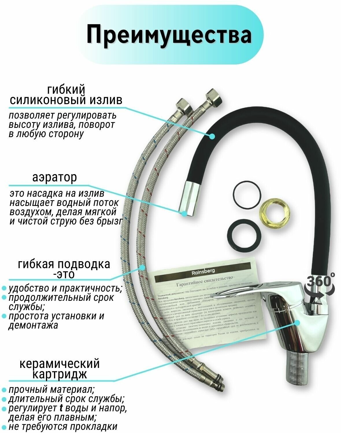 Смеситель для кухни / Кухонный смеситель Rainsberg с гибким силиконовым изливом черный: сравнение цен, характеристики, фото, актуальное наличие и цены.