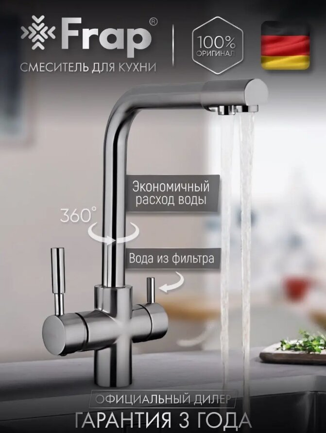 Смеситель для кухни(мойки) с фильтром Frap F4352-5, латунь, сатин: сравнение цен, характеристики, фото, актуальное наличие и цены.