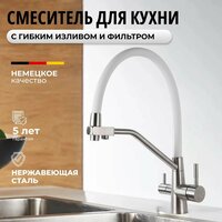 Смеситель для кухни (мойки) с гибким изливом и фильтром, хром, нержавейка T603S.: сравнение цен, характеристики, фото, актуальное наличие и цены.