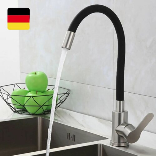 Смеситель для кухни (мойки) с гибким силиконовым изливом Lemen, рычажный, нержавеющая сталь, черный сатин: сравнение цен, характеристики, фото, актуальное наличие и цены.