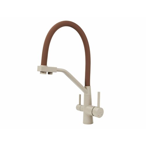 Компания VIKO предлагает вам линейку однорычажных кухонных смесителей с гибким съёмным изливом и подключением к фильтру для кухни, мойки, ванной, умывальника и бани которые соответствуют всем требованиям современных потребителей. Смеситель для кухни VIKO с переключателем на фильтр оснащен тремя подключениями. Один к фильтру, два к водопроводу. Особенность данной модели это съёмный гнущийся излив во все стороны. Излив у таких смесителей сконструирован по принципу двух трубок одна для фильтра вторая для смешанной воды. По жесткой фиксированной трубке идёт отфильтрованная вода, по съёмной силиконовой водопроводная. Это позволяет сэкономить место на кухне и избавляет от необходимости устанавливать дополнительный кран для фильтра. У смесителя с переключателем на фильтр два рычага - один открывает подачу водопроводной воды, второй - фильтрованной. Люди которые привыкли к бутилированной воде, очень быстро переключаются на смеситель с подключением к фильтру. В отличие от бутилированной воды, фильтр под мойкой выдает воду в почти неограниченном количестве. Фильтрующие элементы нужно периодически менять. Качество воды в кране полностью зависит от системы фильтров под мойкой. Качественный сплав обеспечивает максимальную прочность изделия. Устойчив к воздействию тепла и влаги благодаря латунному корпусу и хромированному покрытию, которое легко моется, не ржавеет, не покроется пятнами, не подвергается коррозии. Никель-хромовое покрытие защищает смеситель и душевые аксессуары VIKO от образования трещин и сколов, продлевая срок их службы. Корпус умывальника изготовлен из сплава с высоким содержанием латуни покрытый качественной краской. Присутствуют вставки из разноцветного силикона в изливе. Сантехника VIKO отвечает современным стандартам, отличается приятной эргономичностью в сочетании с интересным дизайном и привлекательной ценой. Надежное покрытие обеспечивает долгую механическую износостойкость деталям. Латунь высокой прочности. Смеситель не изменит свой цвет и не покроется пятнами в течение многих лет. Керамический картридж позволяют без лишних усилий настроить подходящую температуру воды. Удобные однозахватная ручка позволет легко регулировать температуру и напор воды даже мыльной рукой. Уход за смесителем VIKO прост и не требует специальных чистящих средств. Сменный откручивающийся взаимозаменяемый аэратор со стандартной резьбой 1/2". У нас Вы найдете современные качественные смесители по самым доступным ценам в России для Вас ! Купив продукцию VIKO Вы будете рекомендовать ее близким и знакомым. Гибкий носик позволяет менять направление струи, благодаря чему можно помыть что-то объёмное. Для равномерного и практически бесшумного потока воды предусмотрен аэратор с функцией легкой очистки. Керамический картридж диаметром 35 мм с повышенным ресурсом переключений. Дизайн крана позволяет установить его также для ванны. В комплекте: Монтажная гайка - 1 шт; Гибкая подводка - 3 шт; Прокладки - 2 шт. Смеситель российской разработки. Смеситель вико для кухни с подключением к фильтру для питьевой воды и гнущимся выдвижным изливом. Стильный гарнитур для вашей кухни или ванны. Для подключения комплектуется качественной подводкой 50 см. Цвета: черный (графит), бежевый, хромированный, золотой, бронза, белый, сатин, коричневый, беже