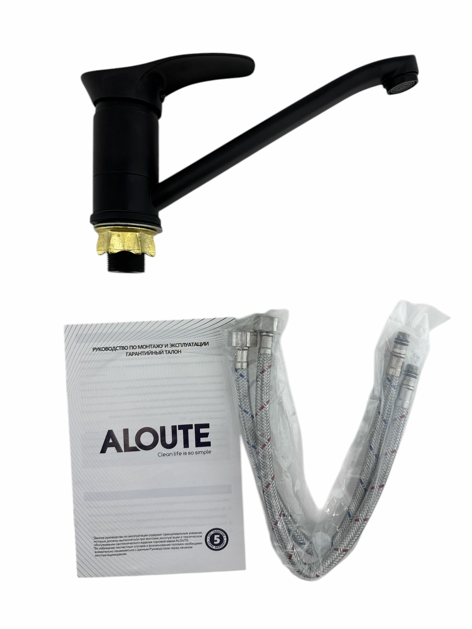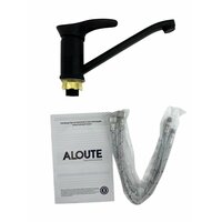 Смеситель для кухни однорычажный ALOUTE. Монтаж на одно отверстие, черный на большой гайке, гибкая подводка 1/2.: сравнение цен, характеристики, фото, актуальное наличие и цены.