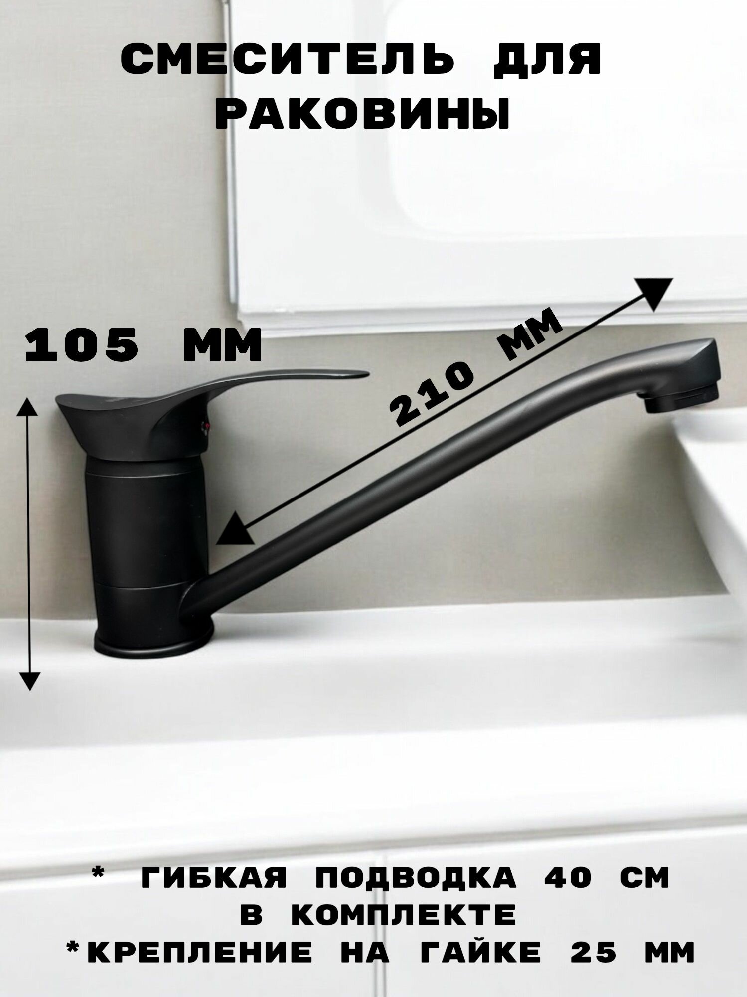 Купить Смеситель для кухни однорычажный ALOUTE. Монтаж на одно отверстие, черный на большой гайке, гибкая подводка 1/2. с доставкой по всей России.