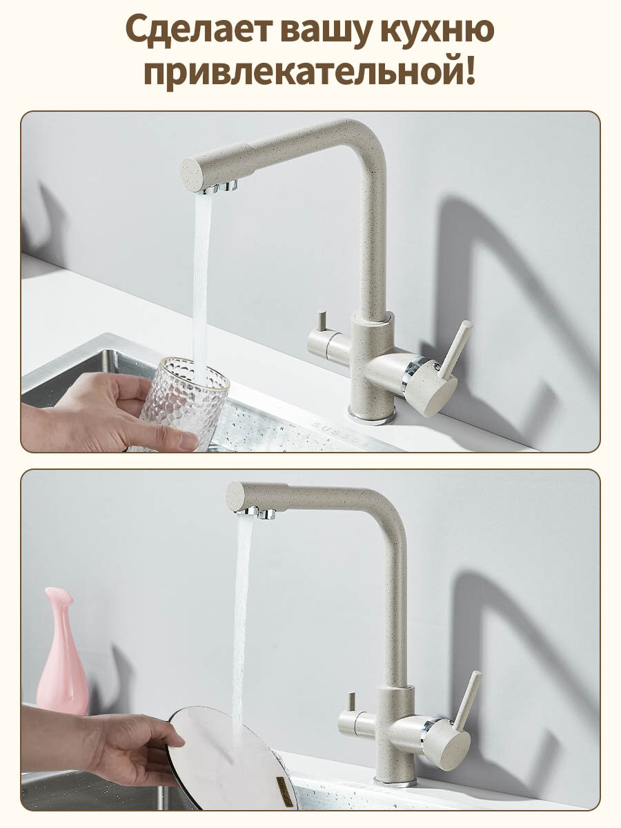 Смеситель для кухни ououfaucet, керамика, высокий излив, бежевый,: сравнение цен, характеристики, фото, актуальное наличие и цены.