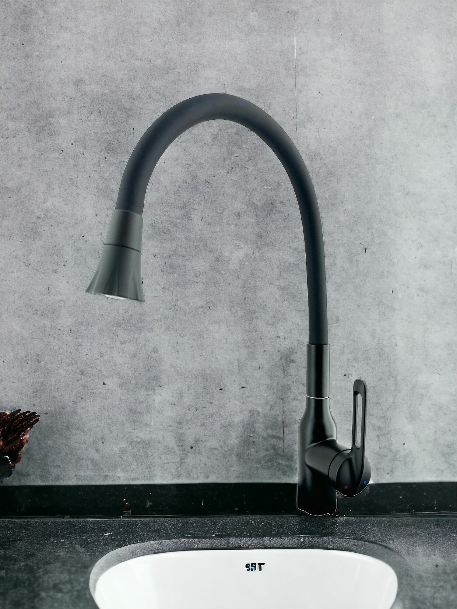 Купить Смеситель для кухни OUTE из нержавеющей стали SUS 304 цвет черный матовый с гибким силиконовым изливом с доставкой по всей России.